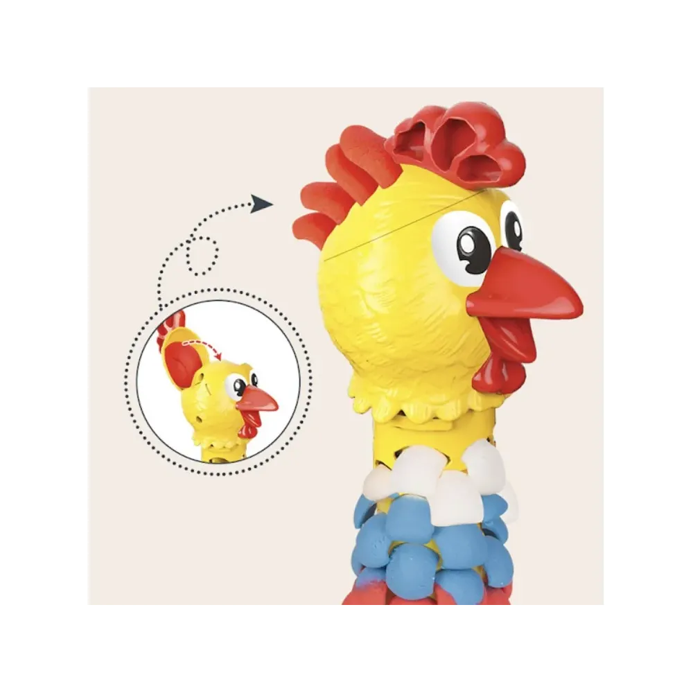 Descoperă un cocoș vesel și colorat care „cotcodăcește” și poate face ouă! Această jucărie amuzantă poate fi personalizată cu plastilină pentru a deveni un cocoș modern și unic, stimulând creativitatea și imaginația copilului. Prin joacă, copilul învață culorile și își dezvoltă atenția, gândirea și abilitățile motrice.