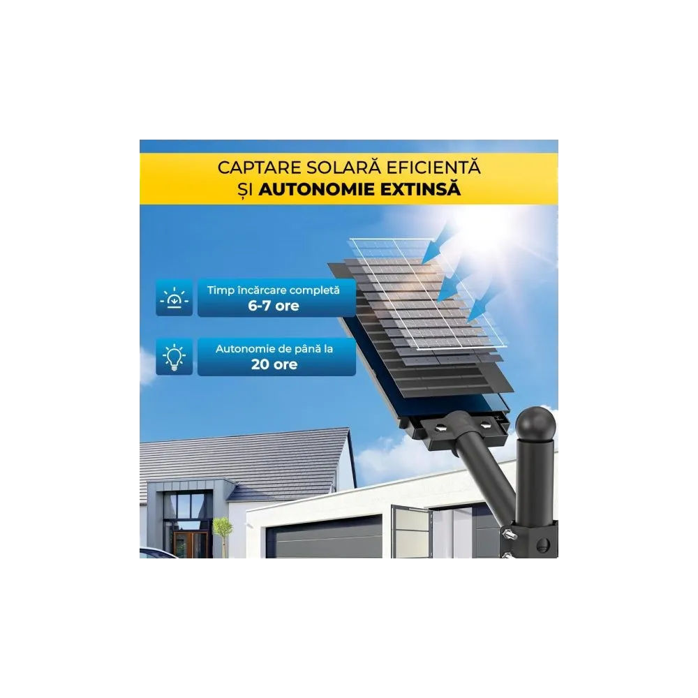Aceasta lampa solara este ideala pentru iluminarea eficienta a curtii , aleilor ,parcari si spatii comerciale si industriale .