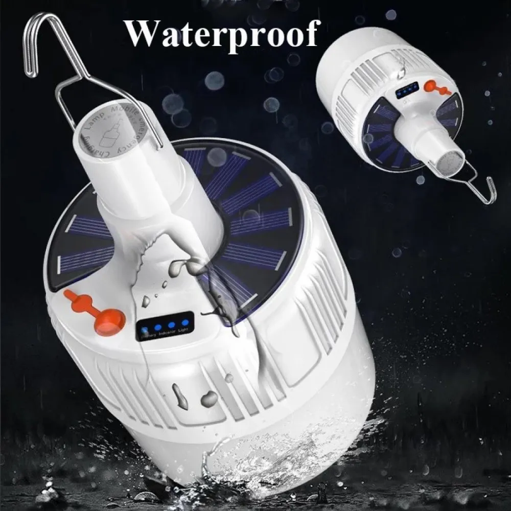 Lampa tip bec cu incarcare solara si USB, 6 moduri de iluminare si carlig pentru agatare, 20W