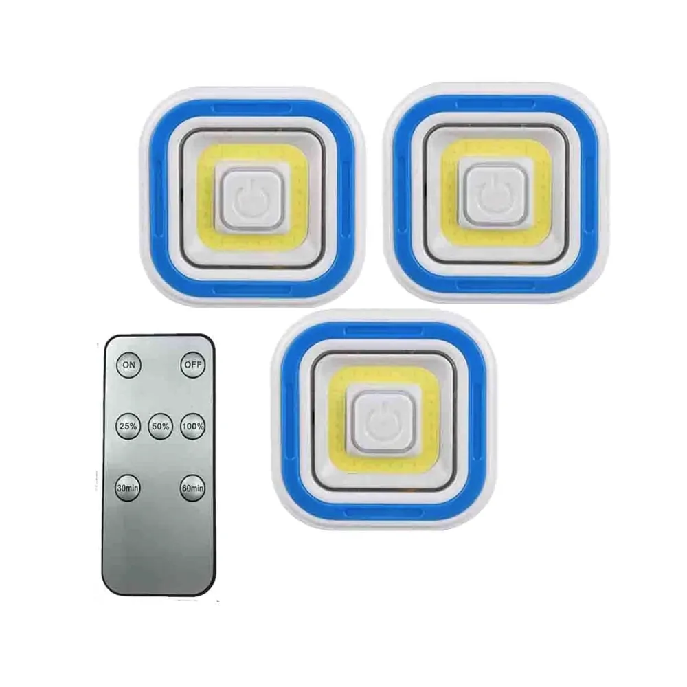 Set 3 lampi LED COB patrate cu telecomanda