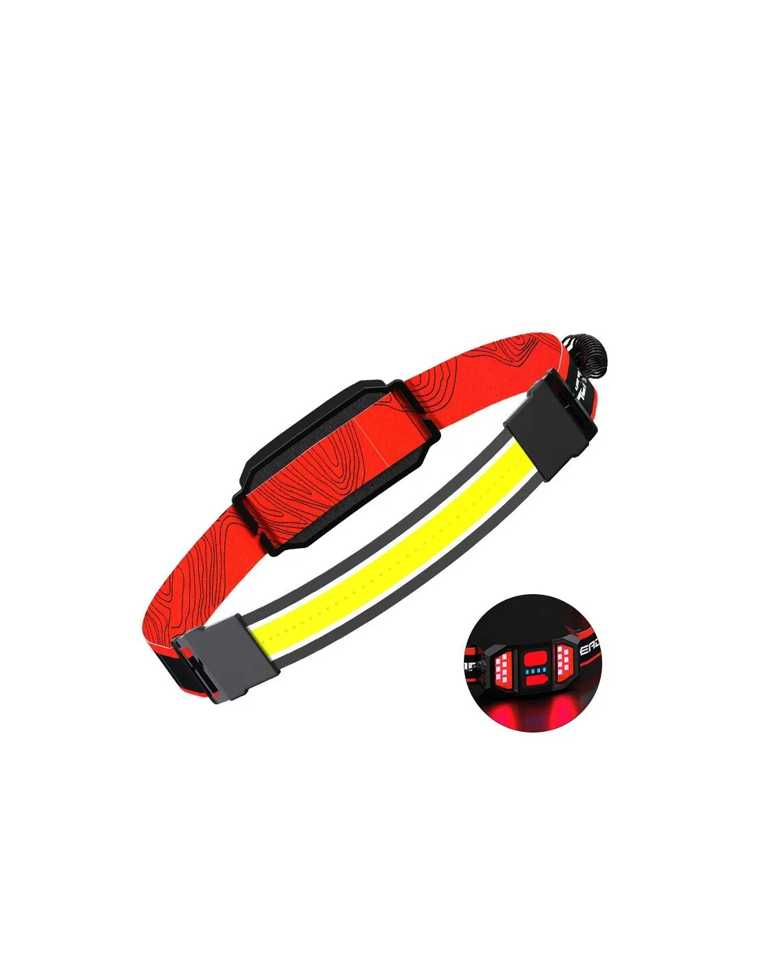 In partea din spate de afla butonul de control, plasat pe carcasa care adaposteste acumulatorul. Luminile incorporate de culoare rosie sunt vizibile de la distanta, ceea ce inseamna ca puteti folosi dispozitivul in timp ce mergeti cu bicicleta sau in drumetie. Partea din fata adaposteste o banda de LED-uri de tip COB, ce ofera o lumina alba intensa, pastrand in acelasi timp consumul de energie la minim.