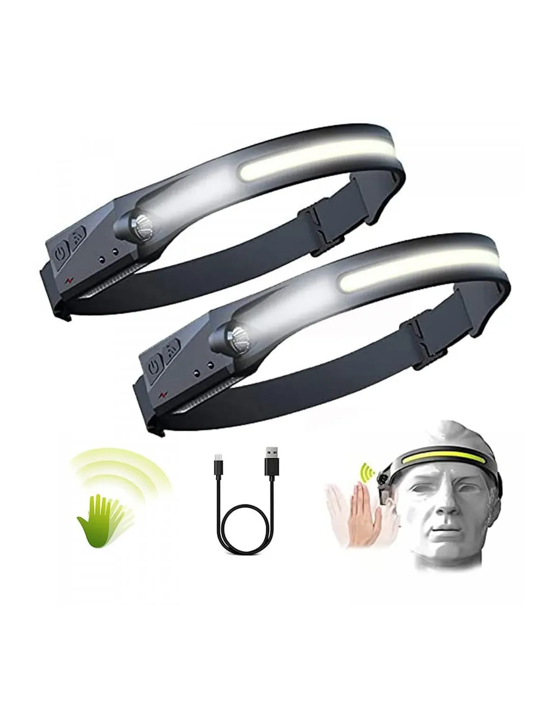 Set 2 x Lanterna frontala LED, 350 lumeni, Negru