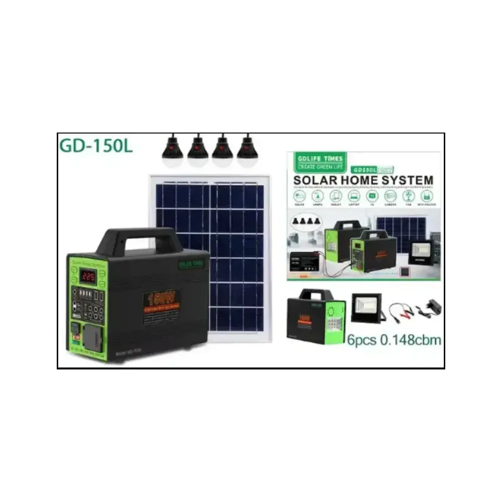Kit sistem solar GD-150L , Invertor 220V 150W, Panou fotovoltaic 40W, cu 4 Becuri si Proiector LED