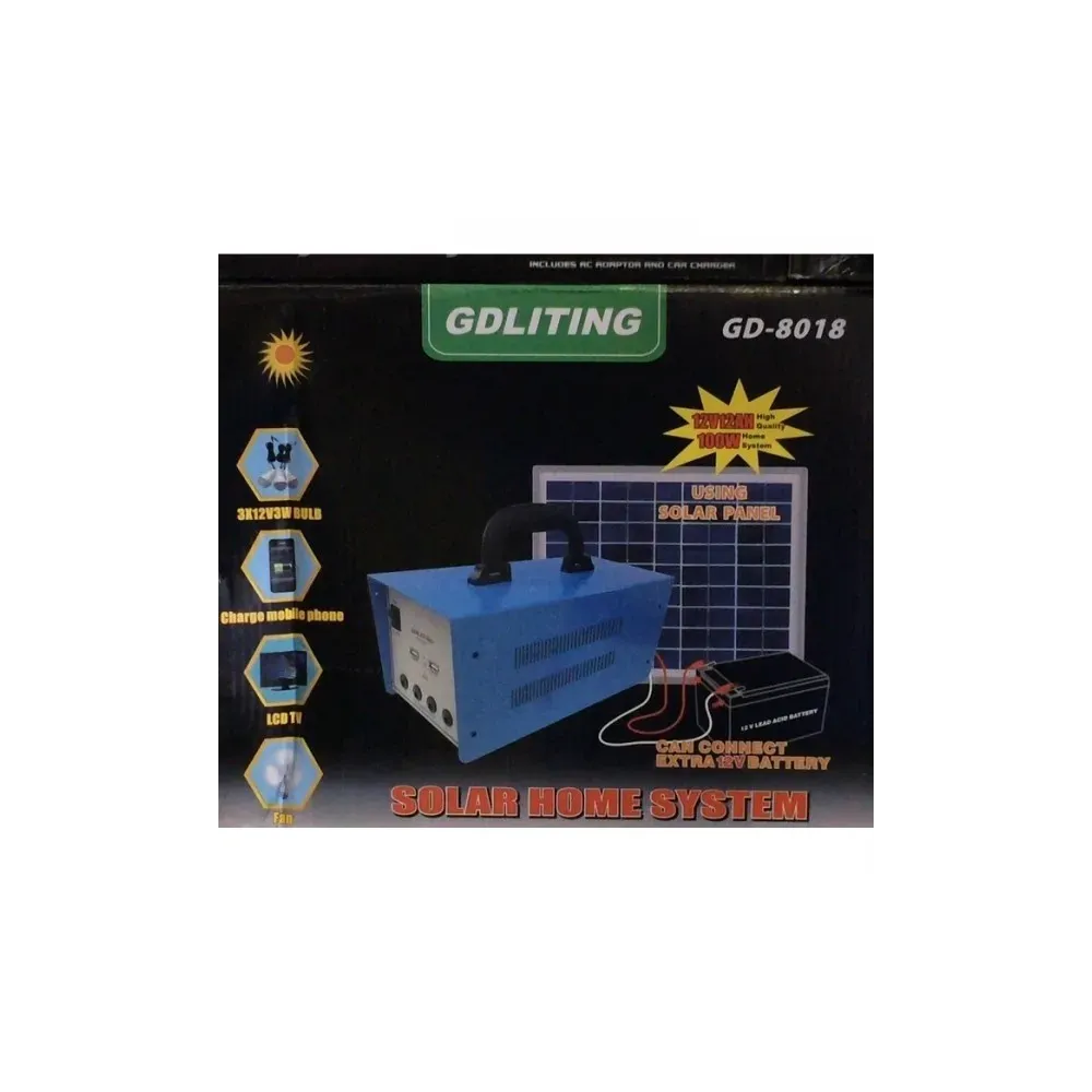 Kitul Solar GDLite GD-8018 12V 12A cu Panou Solar de 18V 20W este un dispozitiv extrem de util in orice locatie in care nu exista alimentare la reteaua de curent electric. Este gata de a fi utilizat. Tot ce aveti nevoie este sa il incarcati,utilizand energia solara.