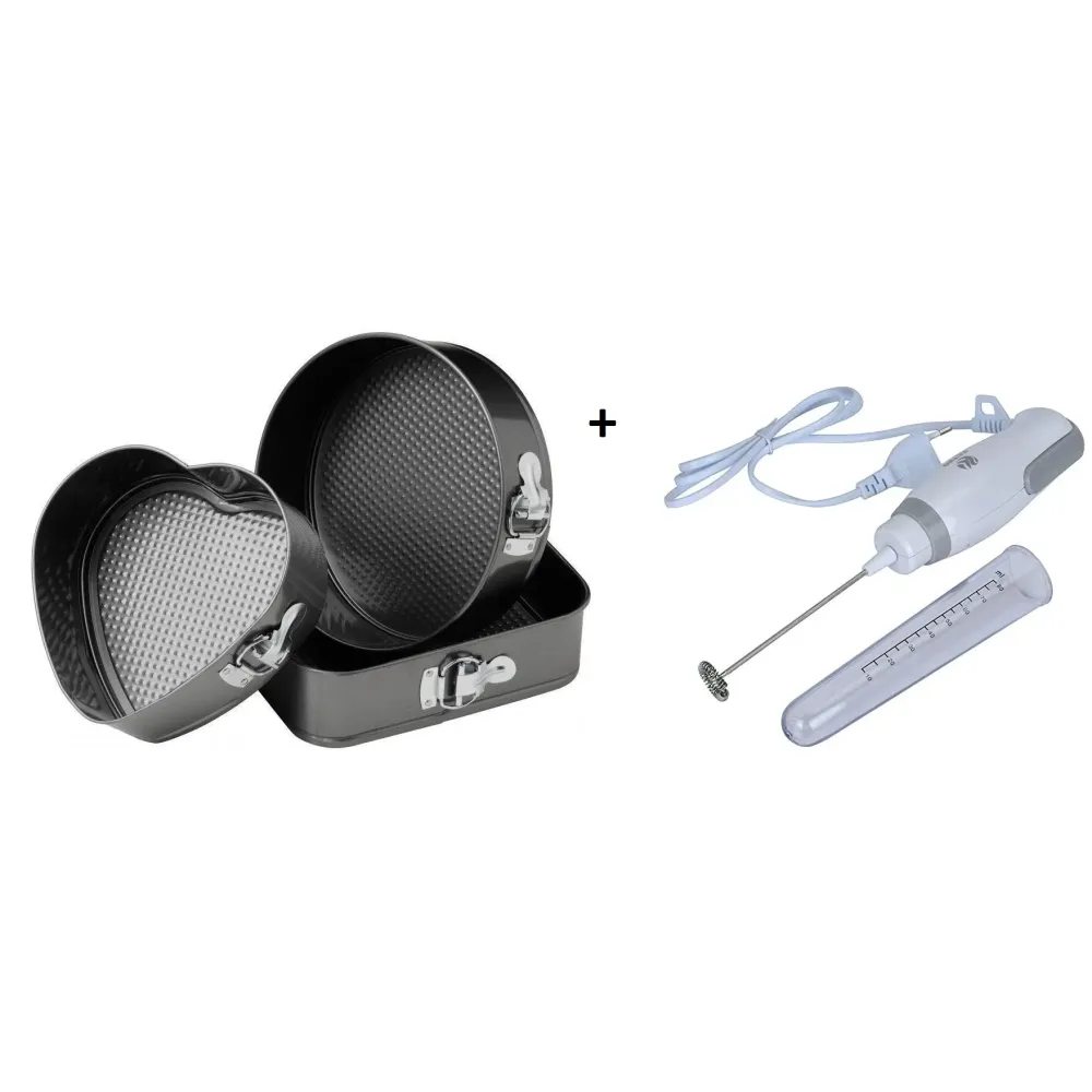 Oferta speciala: Set 3 forme pentru prajituri - forma rotunda, patrata si inima + Mixer de frappe electric cu cana gradata