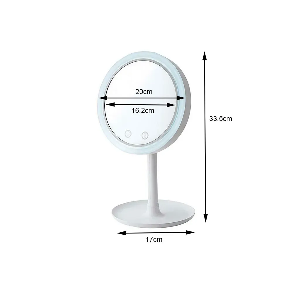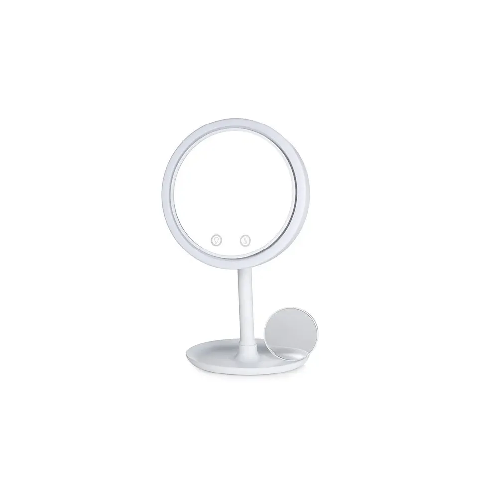 Obține un machiaj impecabil în orice moment al zilei cu ajutorul oglinzii de machiaj prevăzută cu iluminare LED și ventilator integrat. Concepută pentru confort și precizie, această oglindă oferă o lumină uniformă, în ton alb cald, ideală pentru aplicarea fondului de ten, contur, eyeliner sau ruj, fără distorsiuni de culoare.