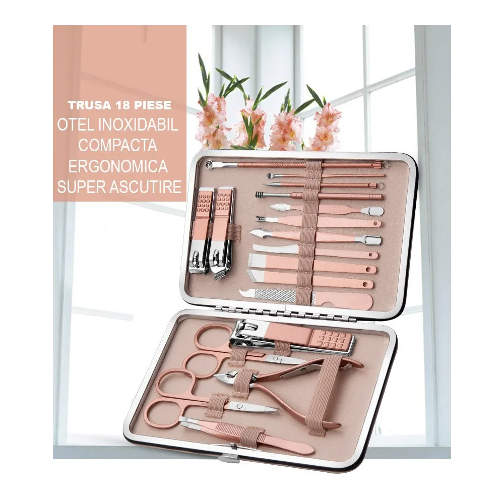Trusa manichiura profesionala 18 piese otel inoxidabil