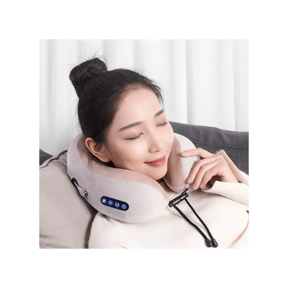 Reduce durerea din zona gatului in timpul calatoriilor, avand o functie de vibratie, cu 2 viteze pentru un masaj usor, iar perna are un efect de memorie de ajustare la gat.