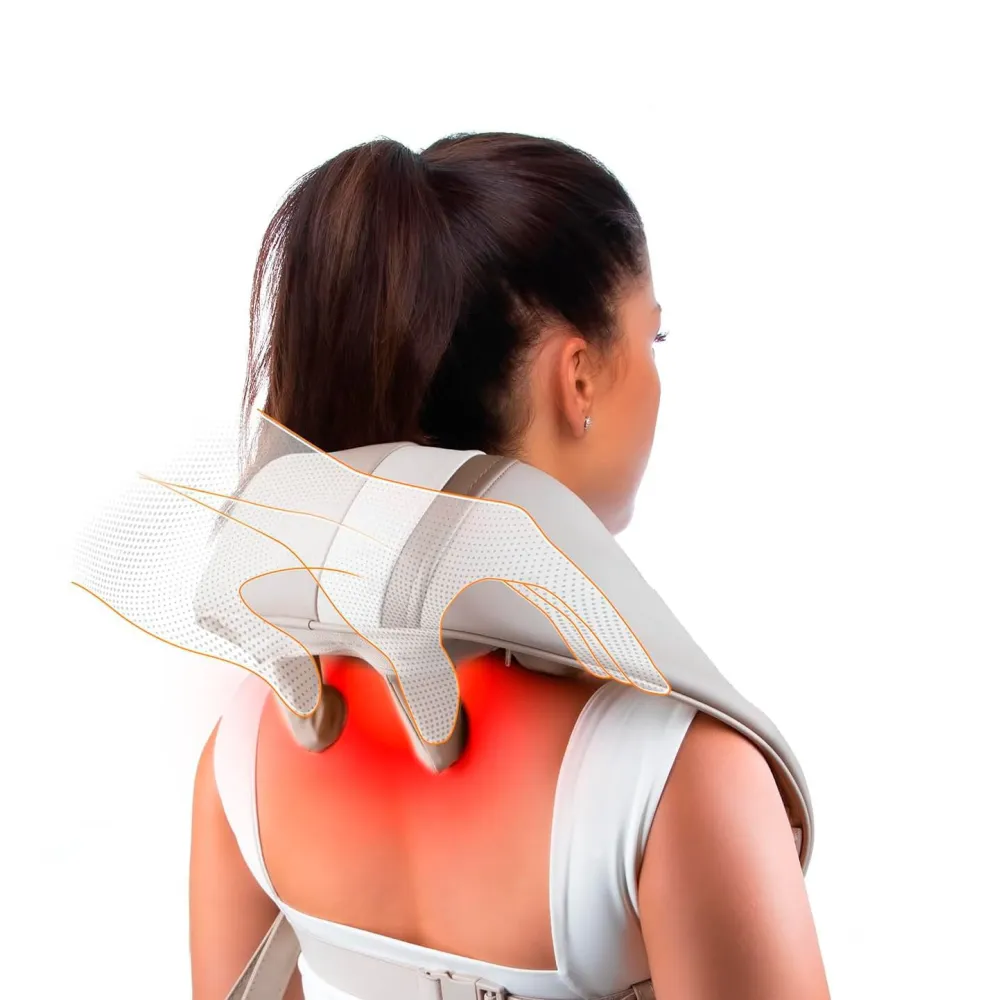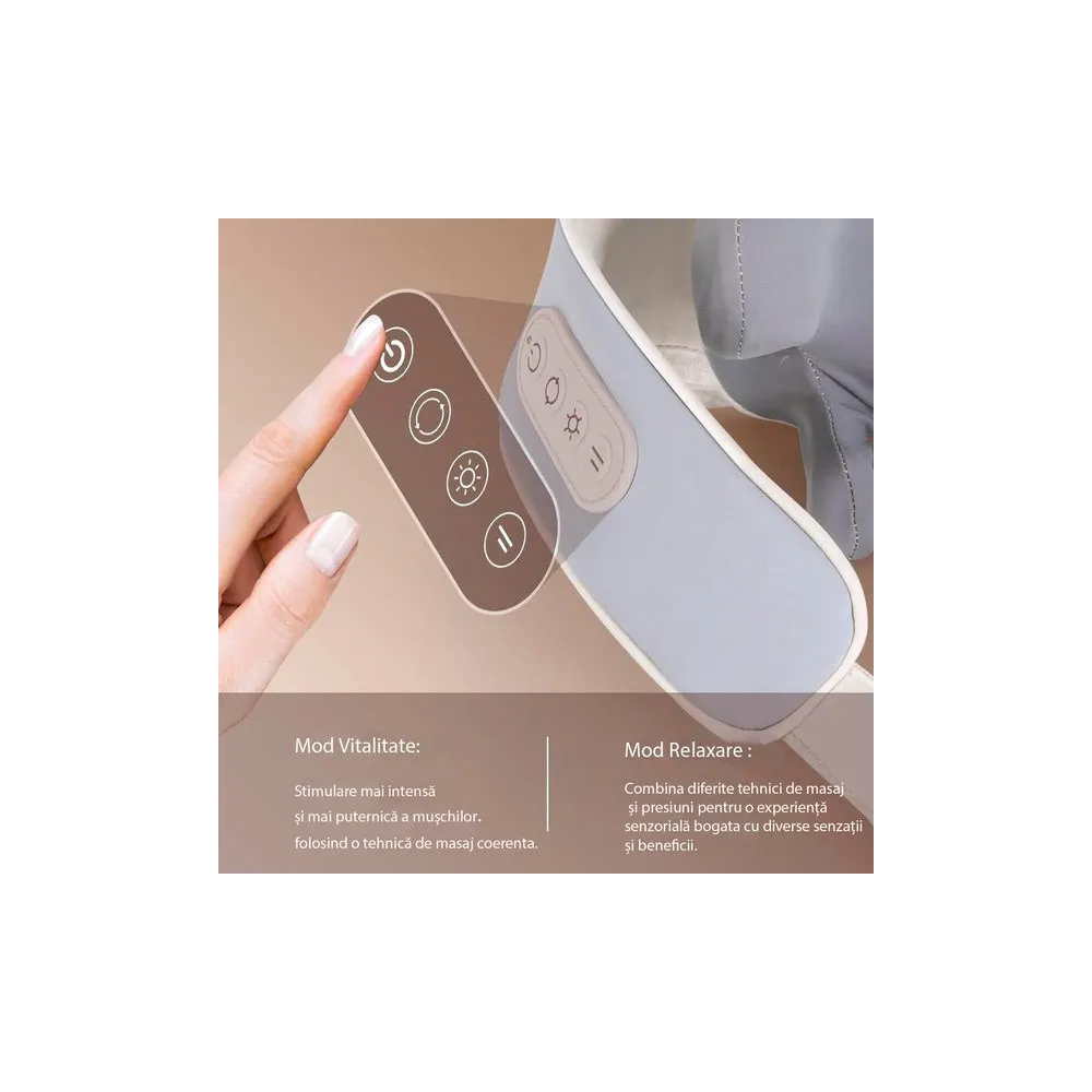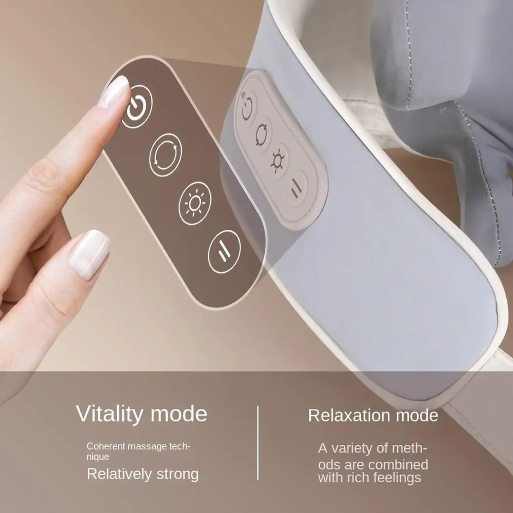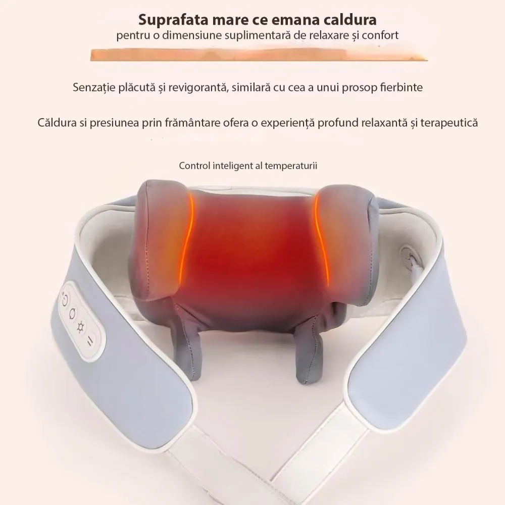 Functia de incalzire poate fi activata pentru a oferi un plus de relaxare. Experimenteaza un nou tip de masaj al gatului! Acest dispozitiv abordează cu atenție punctele de acupunctură din zona umerilor și aplică presiunea necesară pe mușchiul trapez, rezultând o experiență de masaj profund reconfortantă.