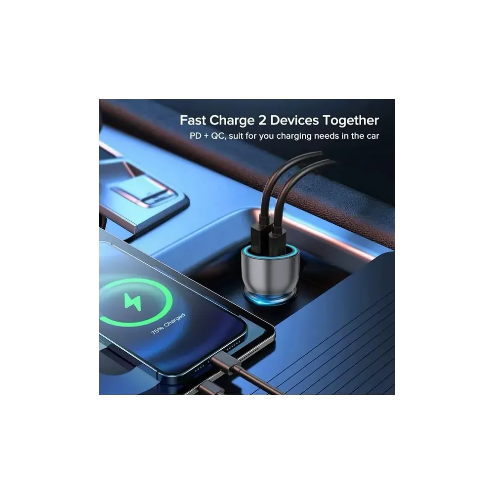 Designul compact, cu indicator LED și finisaj gri transparent, îl face ușor de folosit și elegant în orice mașină. Perfect pentru călătorii și utilizare zilnică, oferind încărcare rapidă și sigură.