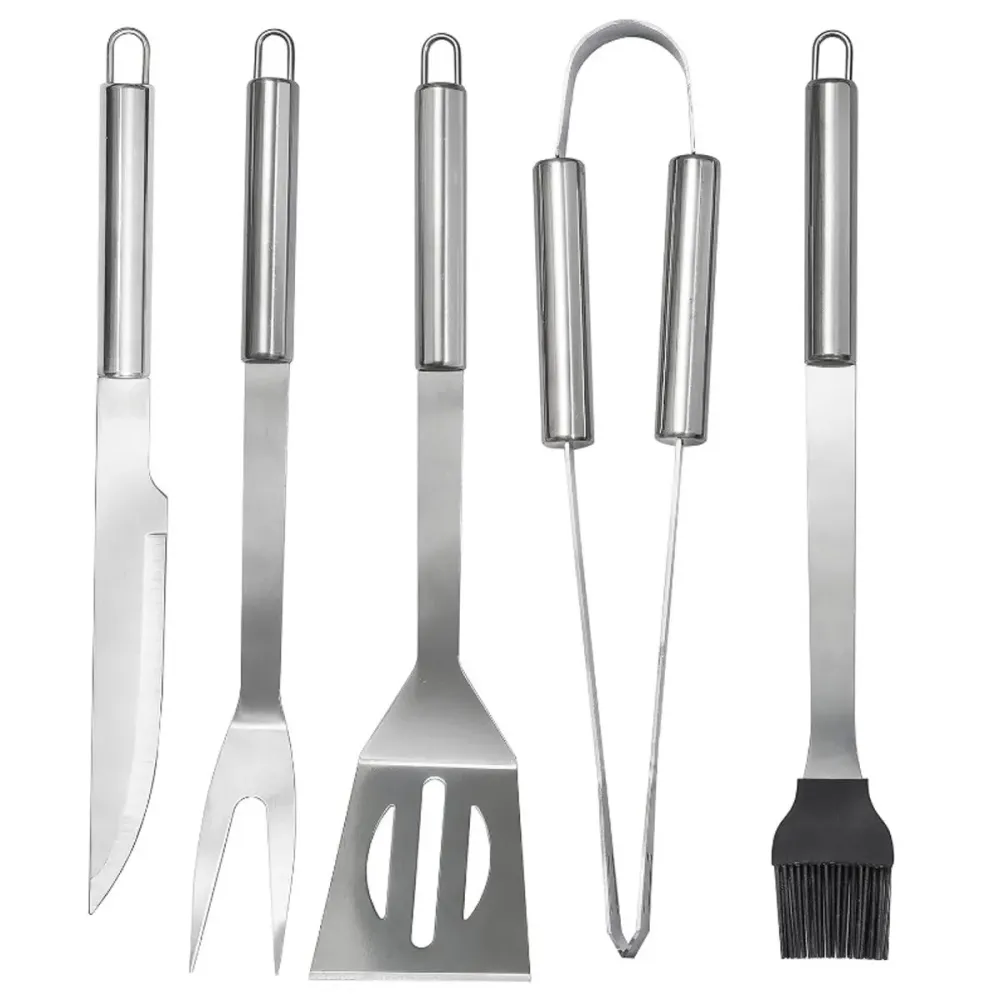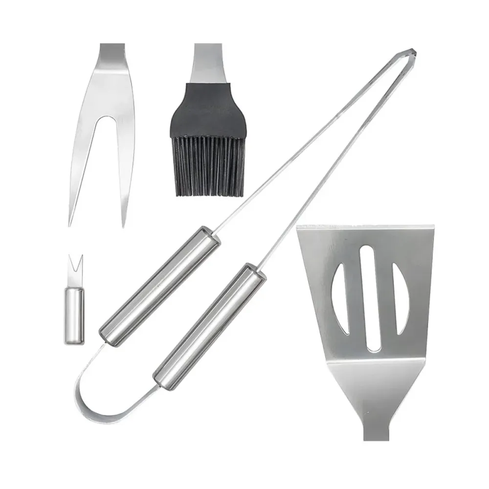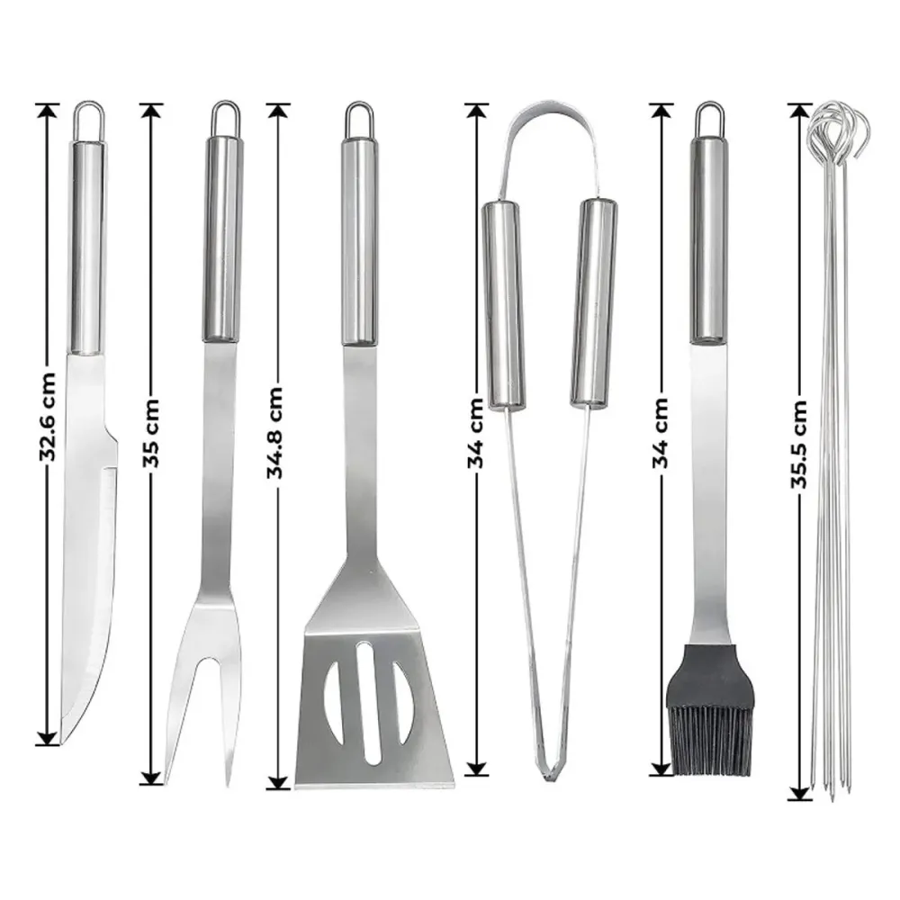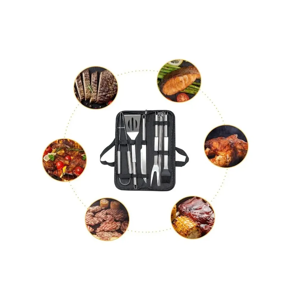 Descoperiți plăcerea gătitului în aer liber cu acest set complet de 9 ustensile pentru grătar, perfect atât pentru acasă, cât și pentru excursii sau vacanțe. Fiecare piesă este realizată din oțel inoxidabil de înaltă calitate, ceea ce garantează durabilitate, rezistență la uzură și curățare ușoară.