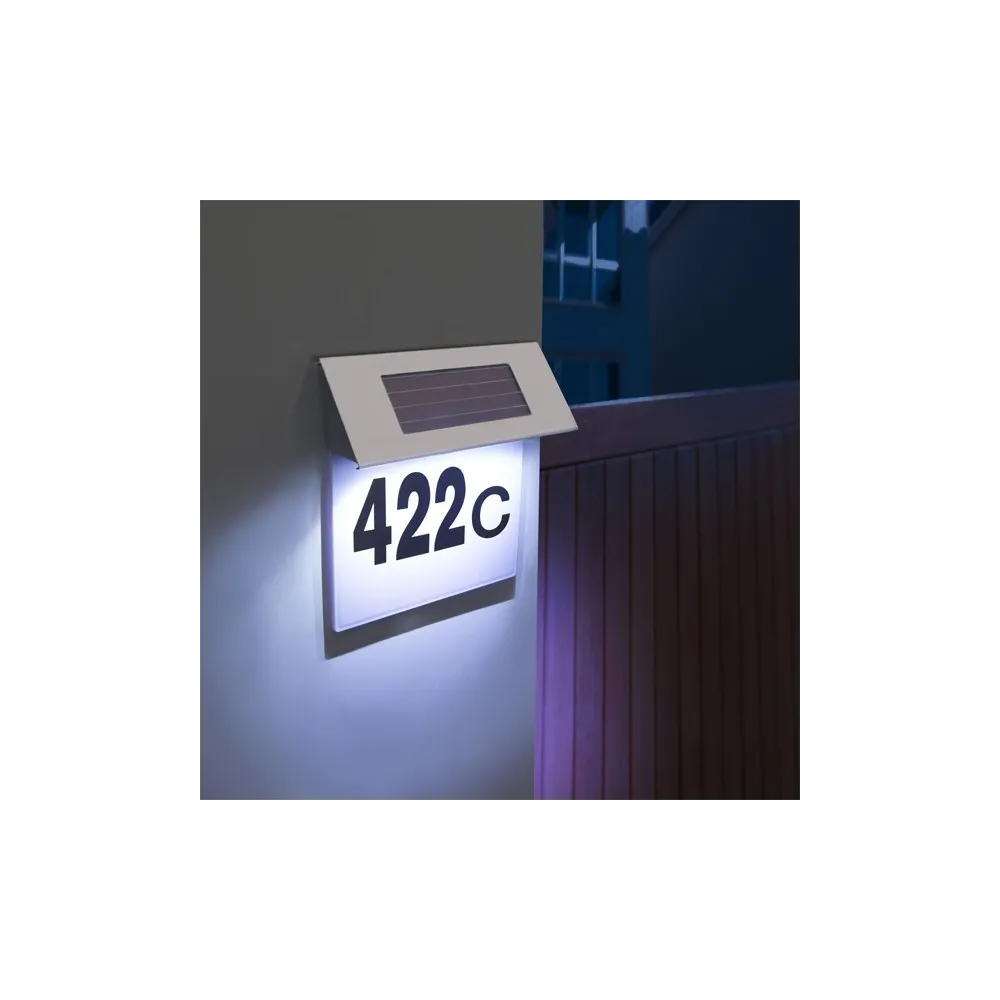 Fabricat din otel inoxidabil, este rezistent la orice conditie meteorologica pe termen lung. Numar de casa cu iluminare LED solara eleganta, care face ca fiecare intrare sa fie speciala. Pe panoul din plastic se poate plasa 3 numere, care vor fi foarte vizibile si noaptea sau in conditii meteorologice defavorabile.