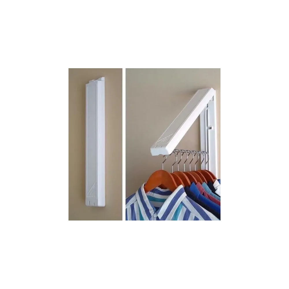 Suport discret pentru umerase 25 x 40 cm Suportul discret pentru umerase 25 x 40 cm se foloseste pentru agatarea spre uscare sau stocare a hainelor pe umerase, Suportul discret pentru umerase 25 x 40 cm poate fi fixat pe perete cu dibluri, Produsul este confectionat din plastic de inalta calitate, rezistent si usor de curatat, Suportul discret pentru umerase 25 x 40 cm are urmatoarele caracteristici: . Dimensiune bara suport umeras: 25cm . Lungime totala suport: 40cm