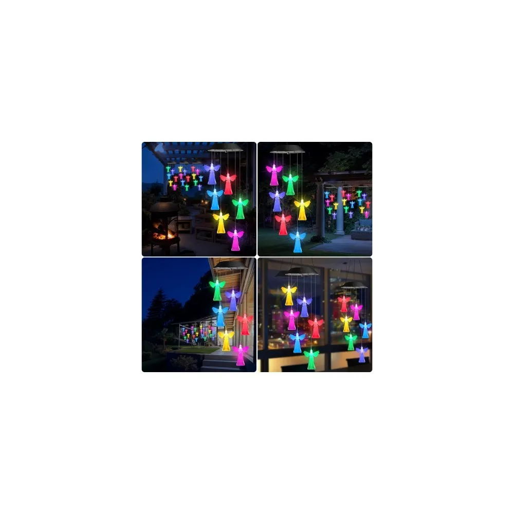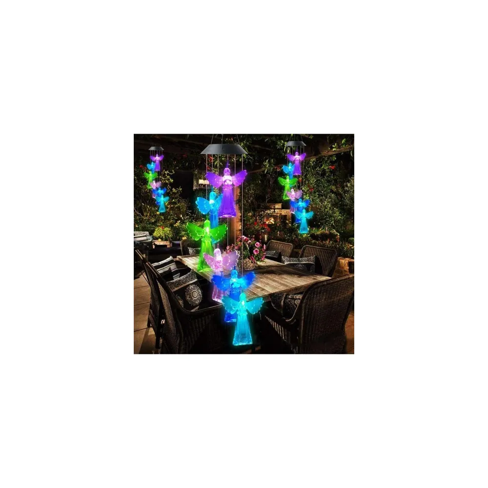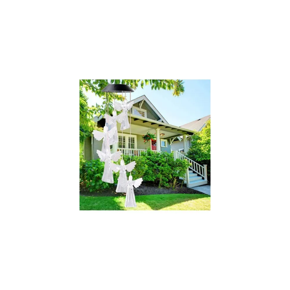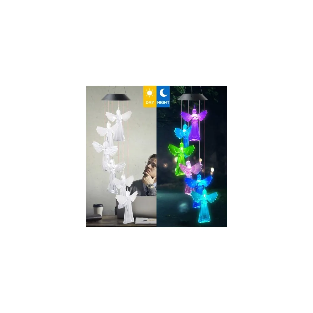 Decoratiune solara de gradina, 6 ingeri Material: PVC Margele de lumina: 6 LED-uri Culoare lumina: multicolor Baterie incorporata (inclusa) Tensiune: 4,5 Putere: 0,05 W Alimentat cu energie solara Dimensiune: 55cm x 12,5 cm x 6 cm Model: Ingerasi