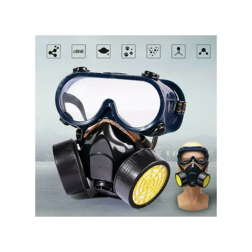 Set ochelari si masca protectie gaze , cu 2 filtre cu carbon activ, protectie respiratorie in mediu chimic, contra vaporilor biologici, vopsea, solventi, fum sau praf