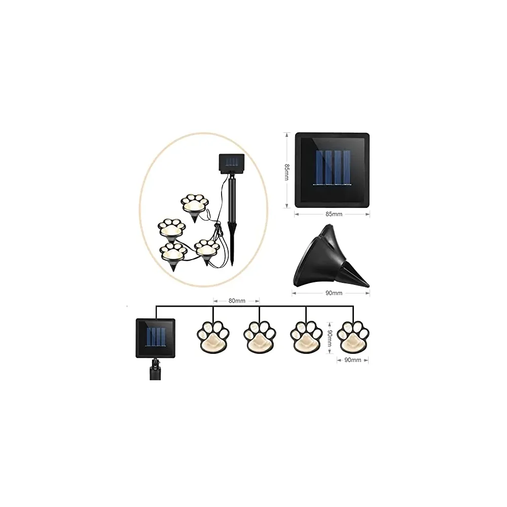 Set 4 Lămpi Solare Paw Print – Iluminare Decorativă cu Labuțe
