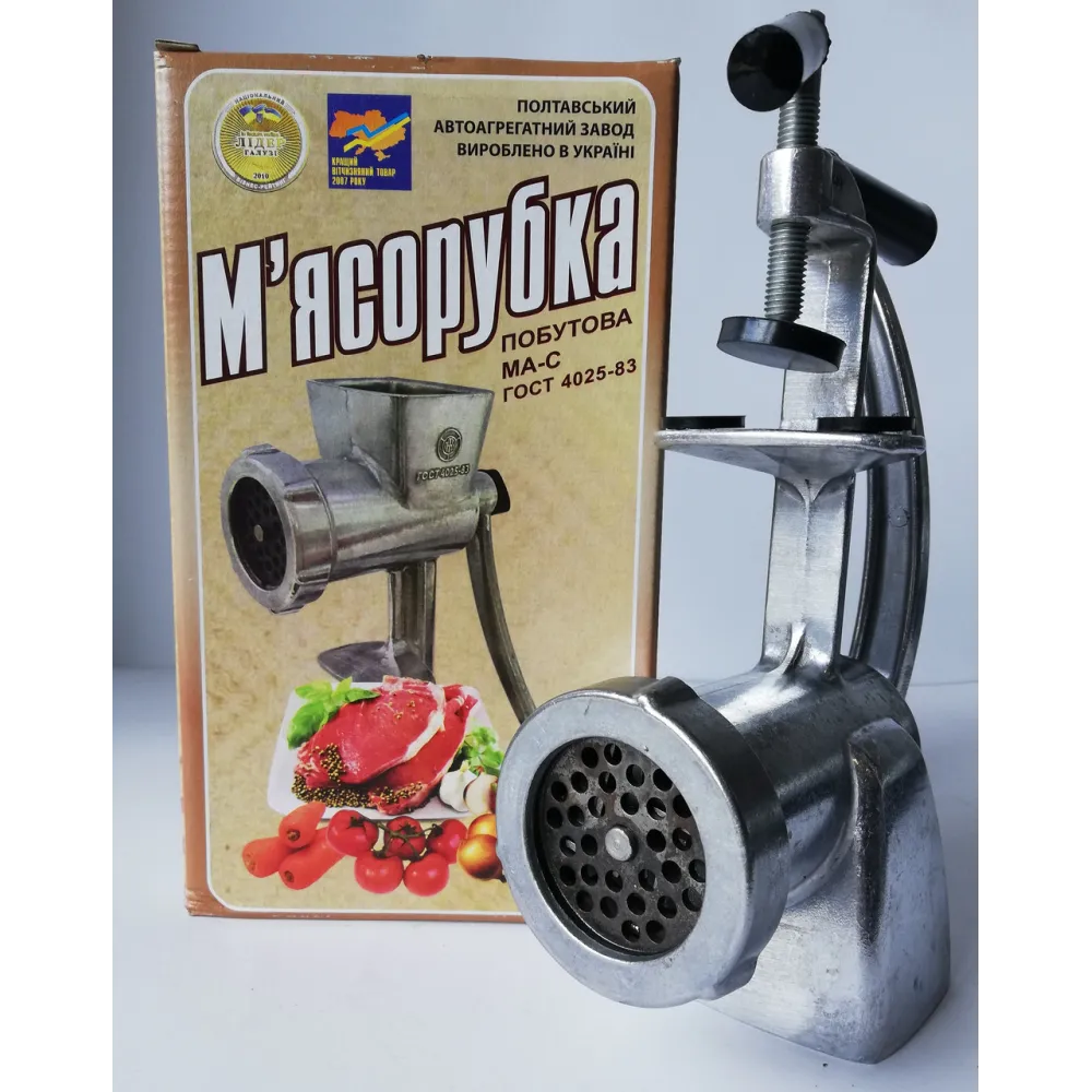 O mașină de tocat carne manuală este folosită pentru a tăia carnea și a o transforma în carne tocată gustoasă, de casă. Materialul mașinii de tocat carne este duraluminiu. Echipat cu o plasă de rezervă cu diametru mai mare.