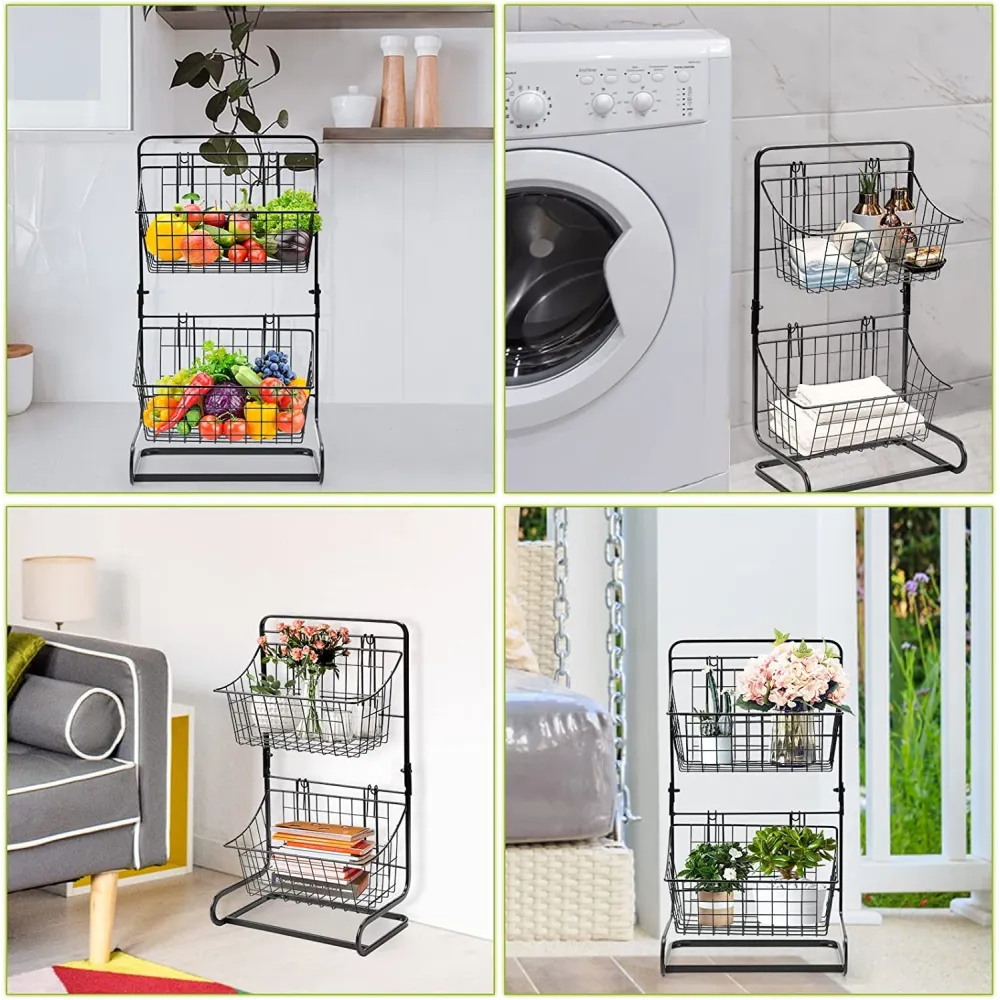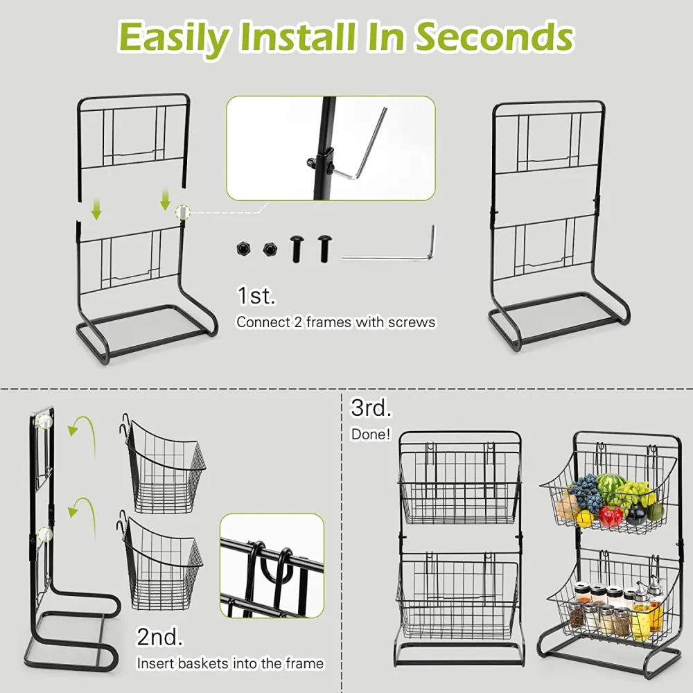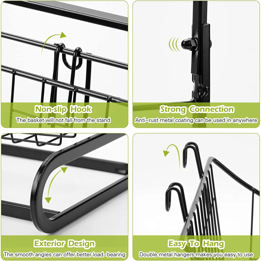 Este fabricat din metal de înaltă calitate, cu un strat negru rezistent la rugină. Și suportul de încărcare al fiecărui coș este de până la 22 lbs, astfel încât nu trebuie să vă faceți griji că sunt îndoiți sau distruși. În plus, firul metalic îl face foarte ușor de curățat