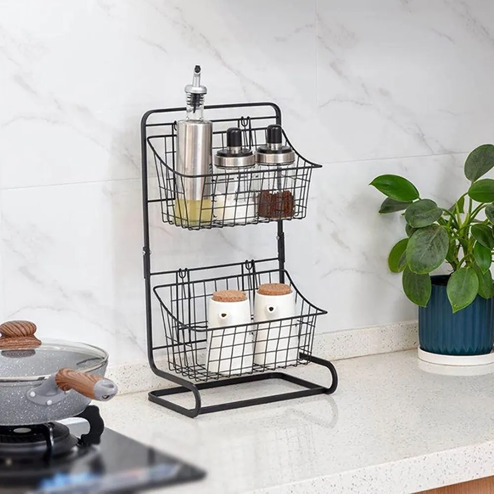 UTILIZARE MULTIPLĂ: Suportul nostru pentru coș de metal nu poate fi folosit doar în bucătărie ca suport de depozitare, ci poate fi folosit și la baie, birou, cameră de studiu, dormitor, spălătorie, garaj, balcon, supermarket etc. Ajutați-vă să aranjați produse în ordine