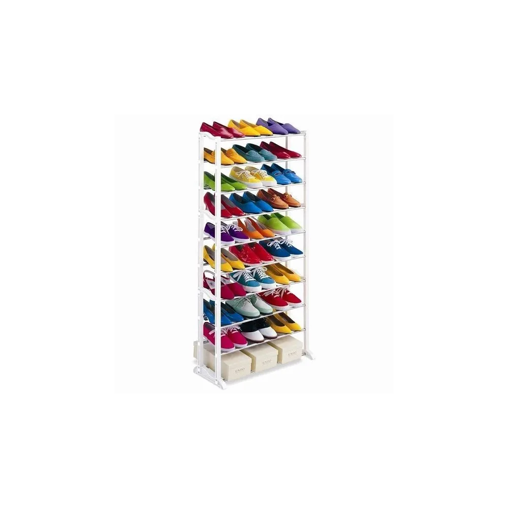 Suportul pentru incaltaminte Amazing Shoe Rack este un sistem de depozitare inteligent. Cu aceasta etajera pentru incaltaminte economisiti loc pentru 20 perechi de pantofi. Acest suport de pantofi este elegant si sustine un numar considerabil de pantofi in mod ordonat si organizat. Suportul pantofi si incaltaminte are zece rafturi care sunt usor de asamblat, ajustabile astfel incat sa puteti potrivi chiar si cizme mai mari alaturi de pantofi subtiri sau adidasi.