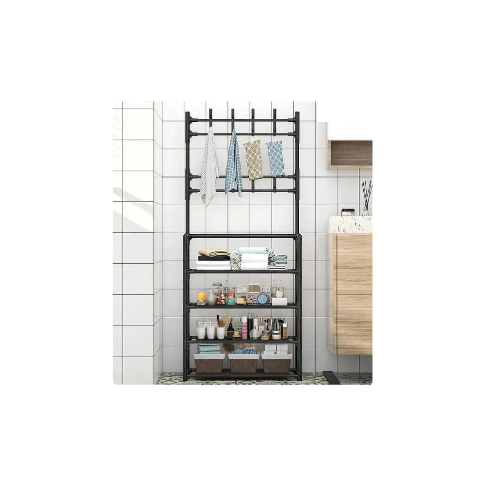 Cu 5 rafturi multifunctionale, acest suport permite organizarea eficientă a pungilor, prosoapelor, cearșafurilor, cărților sau pantofilor, menținând camera curată și ordonată. Rafturile sunt stabile, accesibile și simplu de montat, oferind un spațiu suplimentar de depozitare fără a ocupa mult loc.