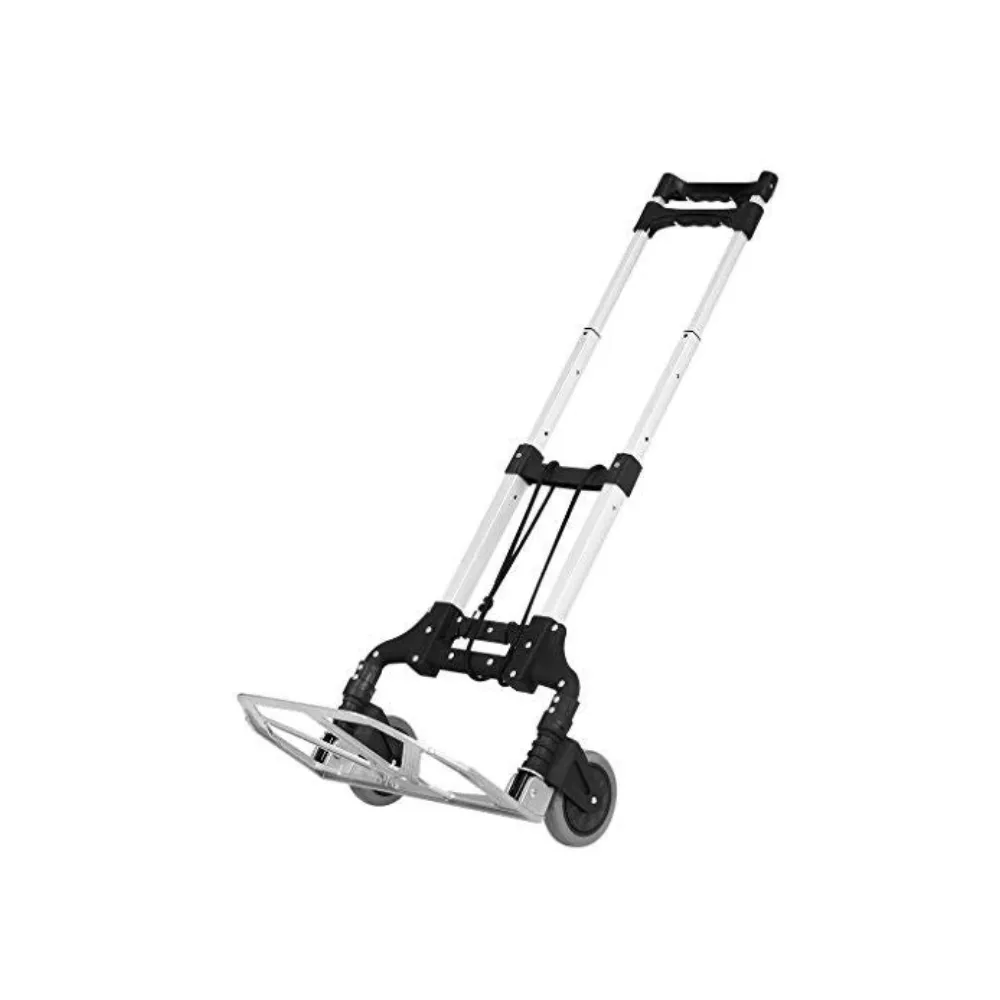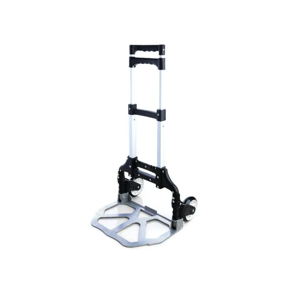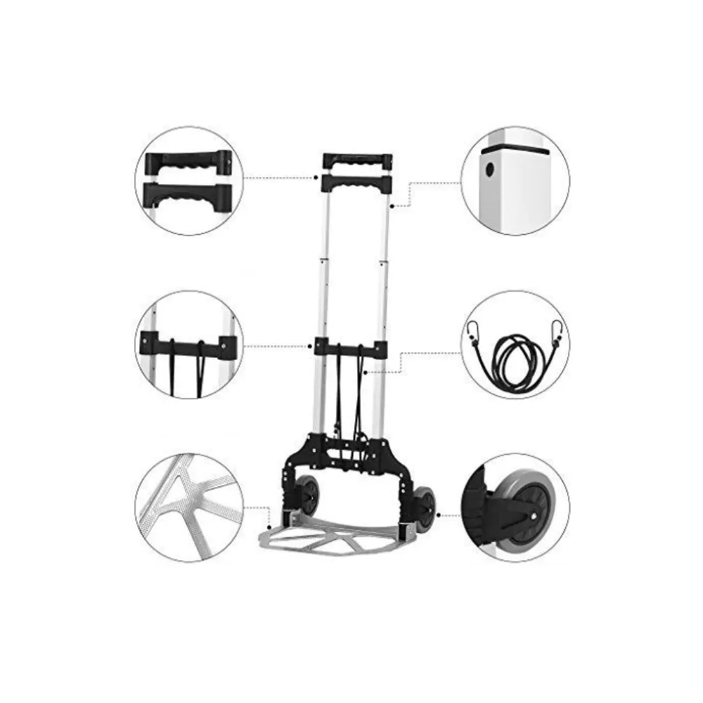 2. Este foarte util si practic, se pliaza pentru a fi usor de depozitat si transportat. Manerul este extensibil, avand 2 trepte de extindere. Cu o singura miscare, platforma de incarcare si rotile se deschid sau se inchid simultan.