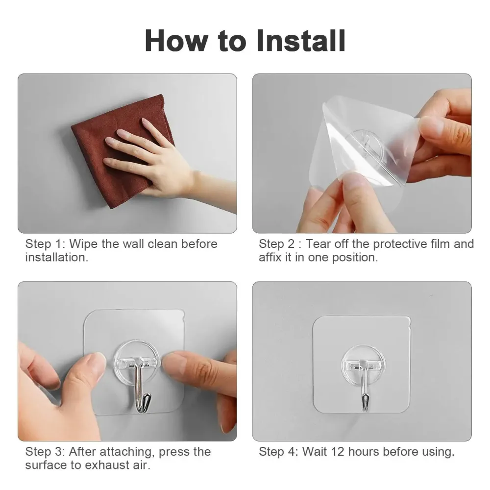 - Pur si simplu lipiti acest suport autoadeziv unic in locul dorit si a doua parte a carligului, care se potriveste in prima, pe obiectul selectat.