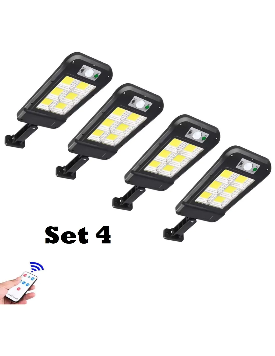 4 x Proiector solar cu 6 celule, 150 LED-uri COB ,telecomanda, sistem prindere, senzor