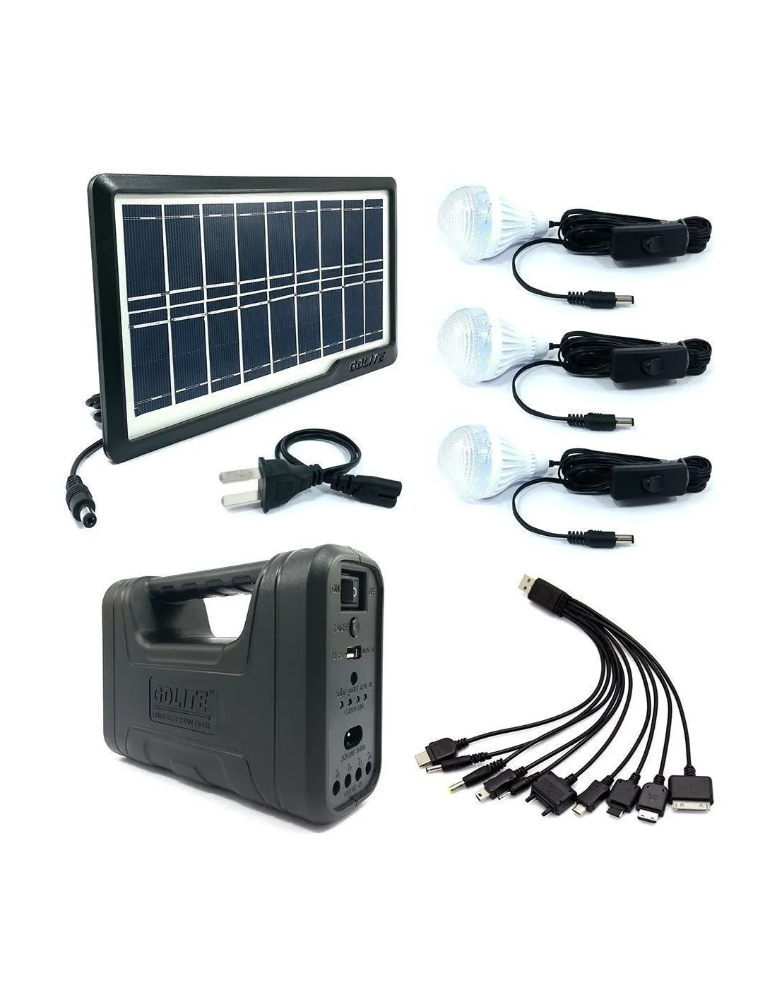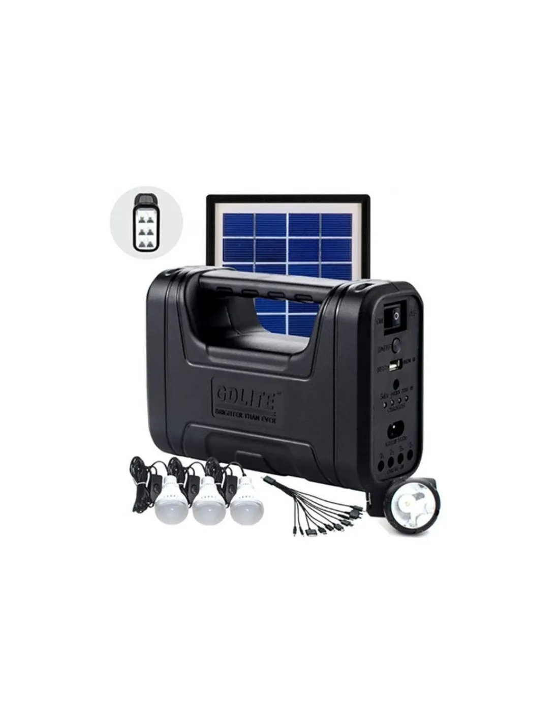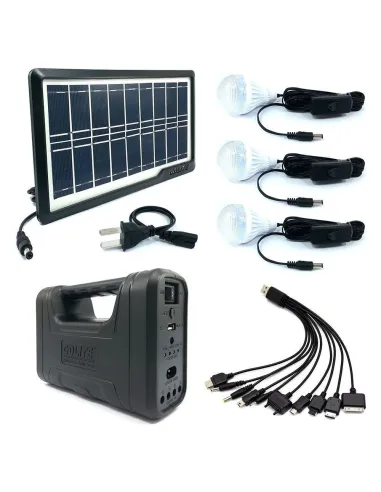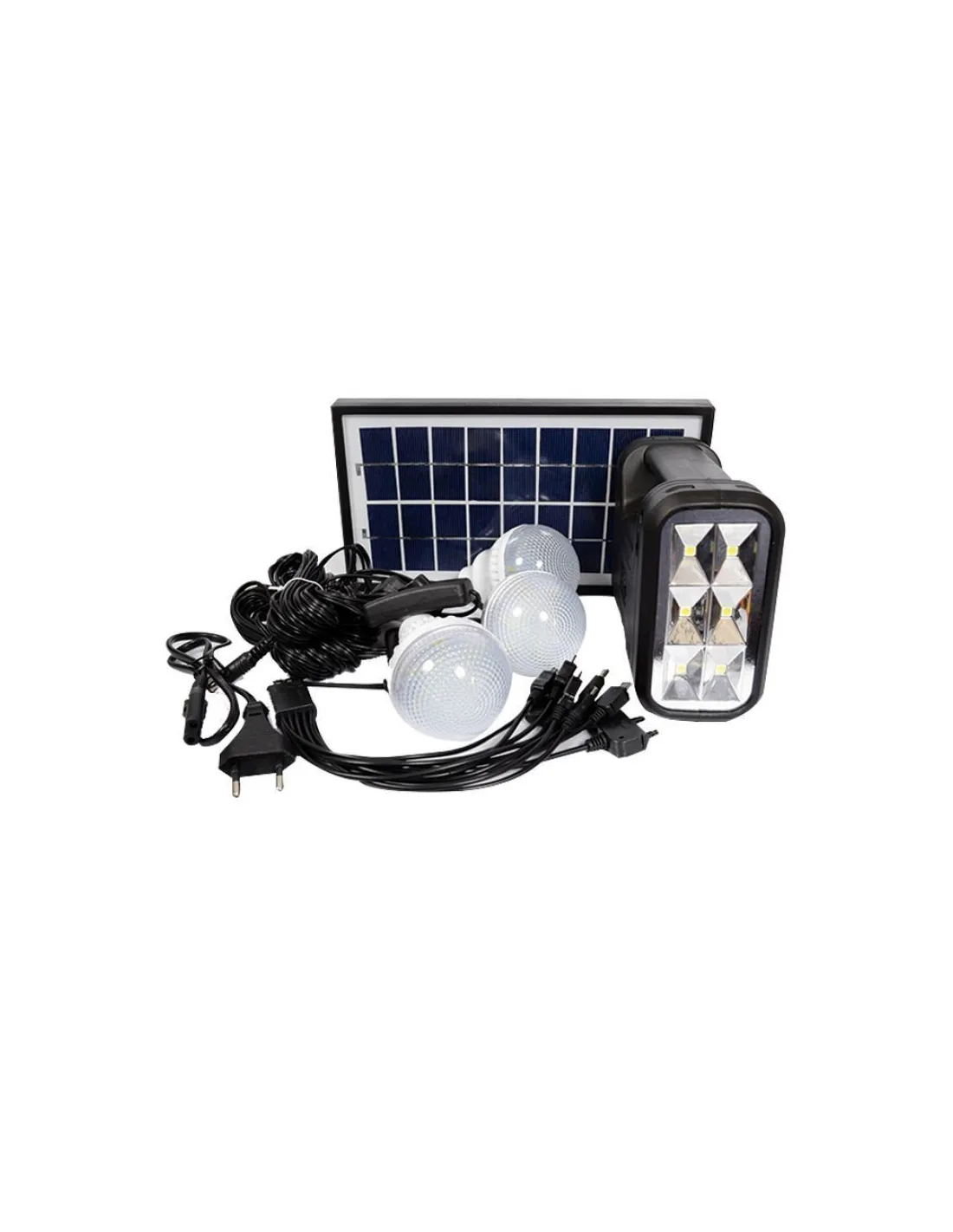 Kit panou solar cu lampa U, lanterna, USB, 3 becuri 6V 4Ah, GD-Lite-1. Acest sistem de iluminare cu panou solar este ideal pentru momentele in care nu dispuneti de energie electrica. Fie ca sunteti intr-o zona izolata, in camping sau in timpul unei pene de curent, kit-ul lanterna cu incarcare solara va ofera toate facilitatile de care aveti nevoie: iluminat portabil prin intermediul celor 3 becuri cu LED-uri SMD si a lanternei, plus incarcarea telefoanelor mobile si a altor dispozitive de la acumulatorul de 4V inclus in sistem.