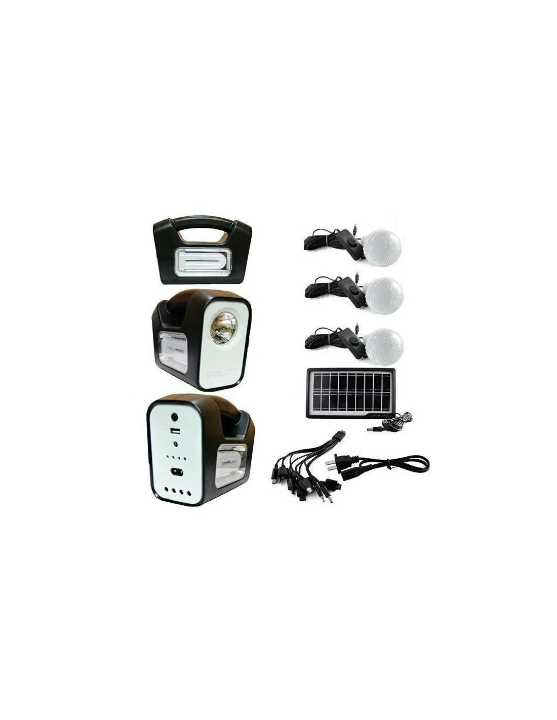 Fie ca sunteti intr-o zona izolata, in camping sau in timpul unei pene de curent, kit-ul solar va ofera toate facilitatile de care aveti nevoie: iluminat portabil prin intermediul celor 3 becuri cu LED-uri SMD, cu ajutorul lampi U si a lanternei cu led 1W complet echipata si incarcare telefoane mobile si alte dispozitive de la acumulatorul de 6V 4Ah inclus in sistem.
