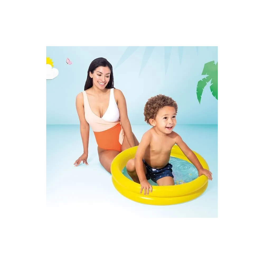 Piscină copii gonflabilă galbenă Intex 61x15cm este o modalitate excelentă de a le oferi oportunitatea de a se bucura de apa și de jocuri acvatice în siguranță. Iată câteva lucruri de luat în considerare atunci când căutați o piscină gonflabilă pentru copii
