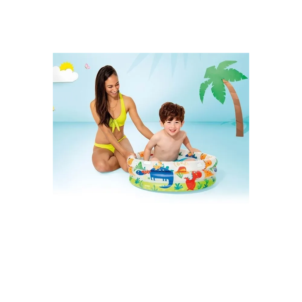 Transforma curtea sau balconul intr-un mic colt de distractie pentru cei mici cu aceasta piscina gonflabila decorata cu dinozauri simpatici! Conceputa special pentru zilele toride de vara, piscina ofera copiilor o experienta racoritoare si plina de veselie, chiar in confortul propriei case.