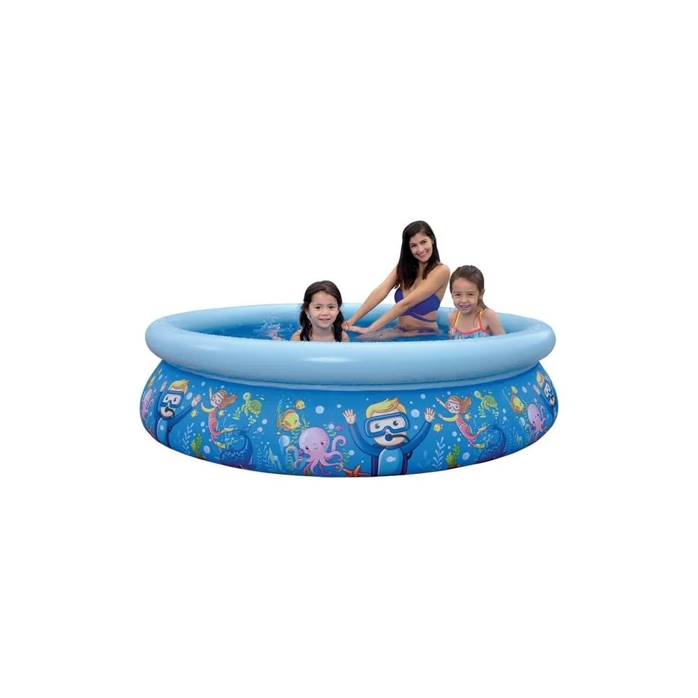 Piscina pentru copii, cu inel superior gonflabil care sustine captuseala interioara, pereti din PVC intarit in 3 straturi care asigura durabilitate si rezistenta.