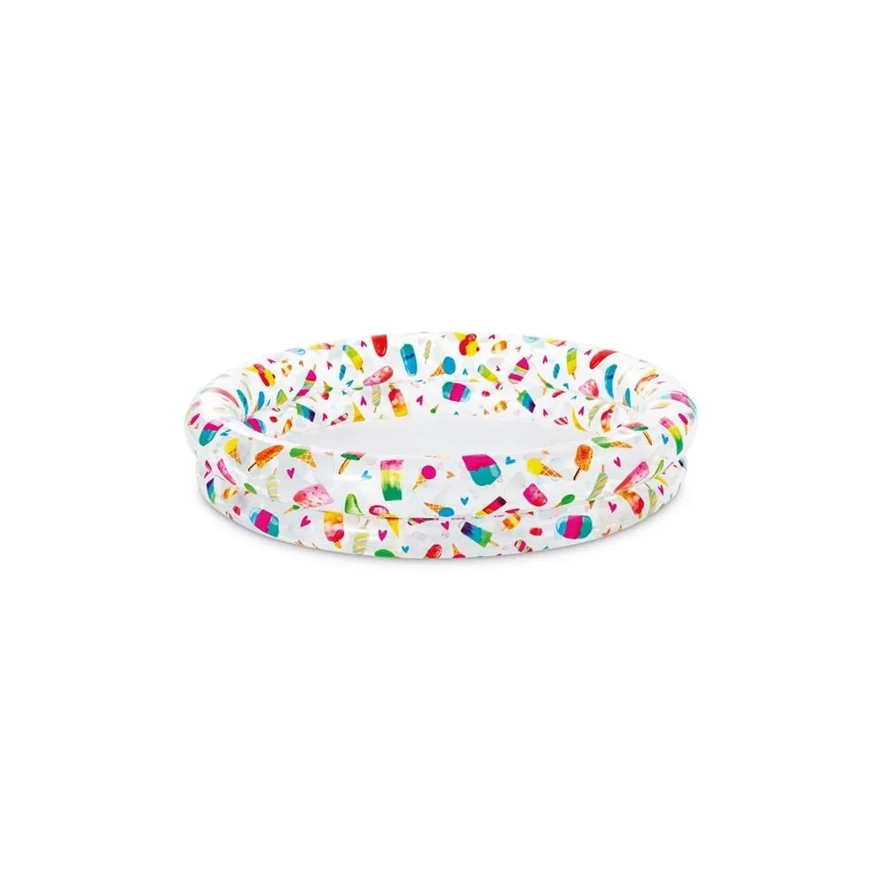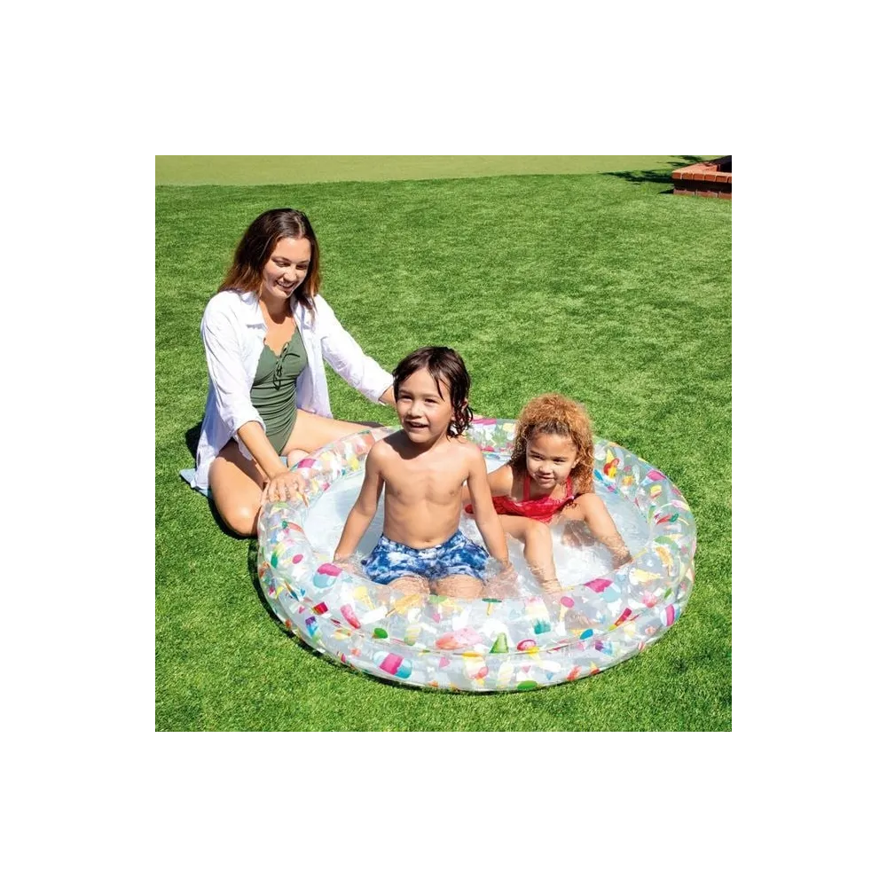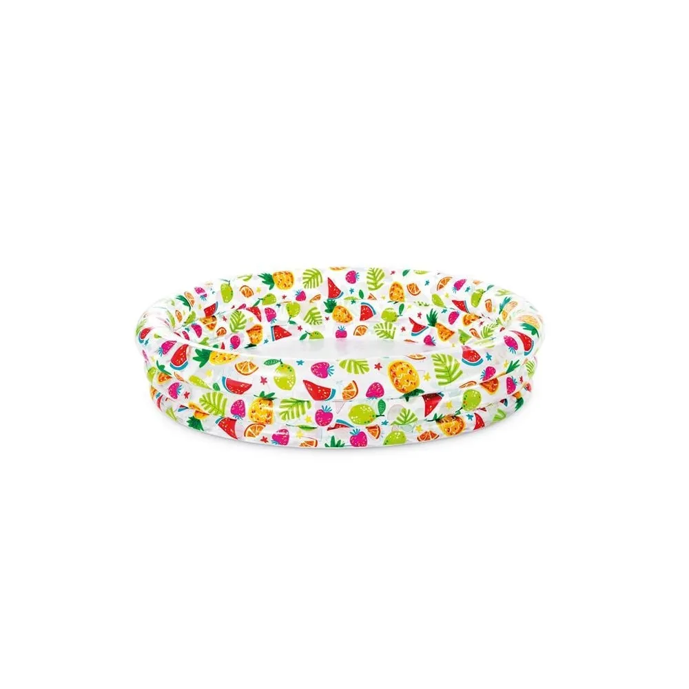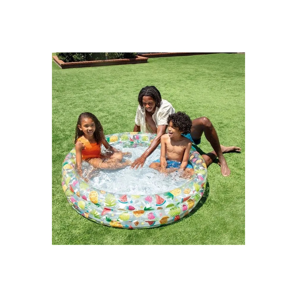 În zilele fierbinți de vară, răcoarea în piscină este cea mai bună opțiune. Piscina circulară pentru copii are două camere și un diametru de 122 cm. Înălțimea este de numai 25 cm, ceea ce înseamnă că nu sunt necesare cantități mari de apă, iar apa infuzată se încălzește rapid la soare. Designul vesel atrage în mod direct jocul cu apa. Este inclus un kit de reparații.