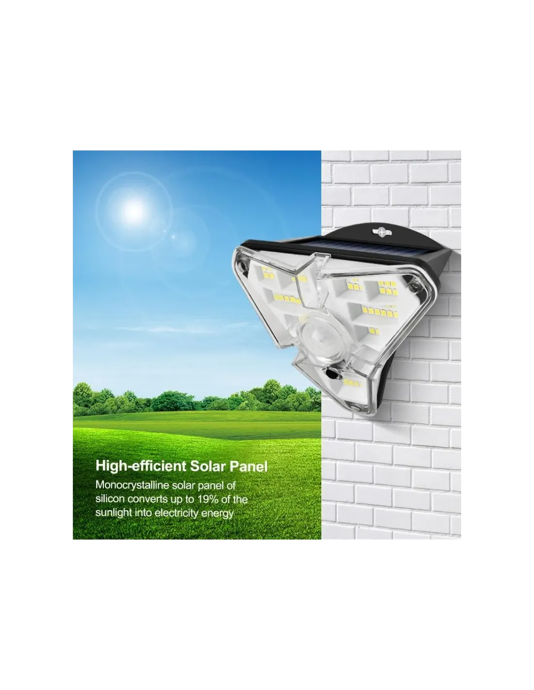Are o aplicabilitate larga aceasta luminare solara de exterior, este potrivita pentru gradini, piscine, garduri, curti, alei, scari, pereti exteriori si multe altele. Prezinta rezistenta la apa si la alte conditii meteorologice nefavorabile. Senzorul de miscare poate scana sursa de csldurs care se misca continuu in zona de detectare. Cand cineva apare in zona, lumina se va aprinde automat.