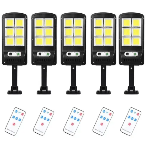Set 5 x Lampa solara cu 6 celule, LED-uri COB si telecomanda