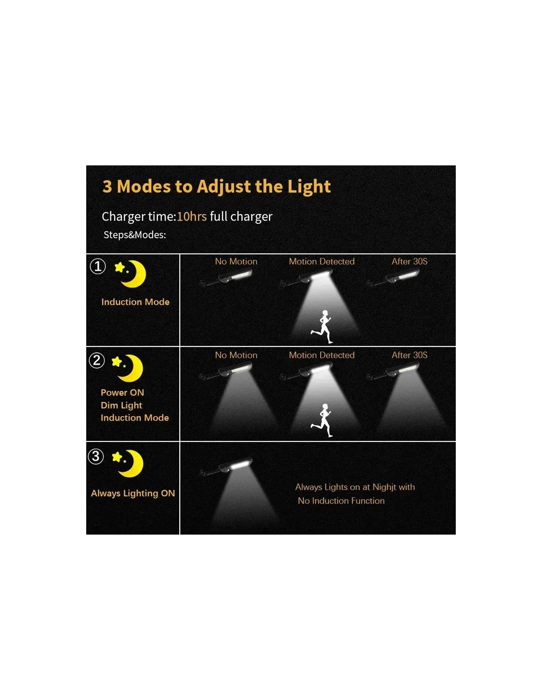 Este usor de instalat fara a trage fire. Este necesar doar sa se pozitioneze produsul pe perete cu un surub. In timpul zilei, lumina nu este aprinsa, doar in timpul noptii. Lampa solara rezistenta la apa ip65, rezistenta la caldura, potrivita pentru majoritatea tipurilor de vreme.