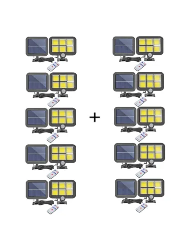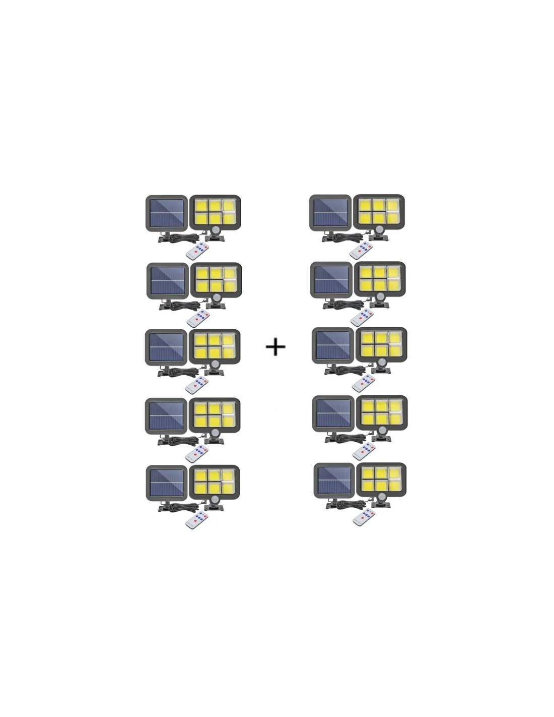 Set 10 x Lampa cu panou solar, 6 COB , putere 250 W, senzor de miscare si telecomanda