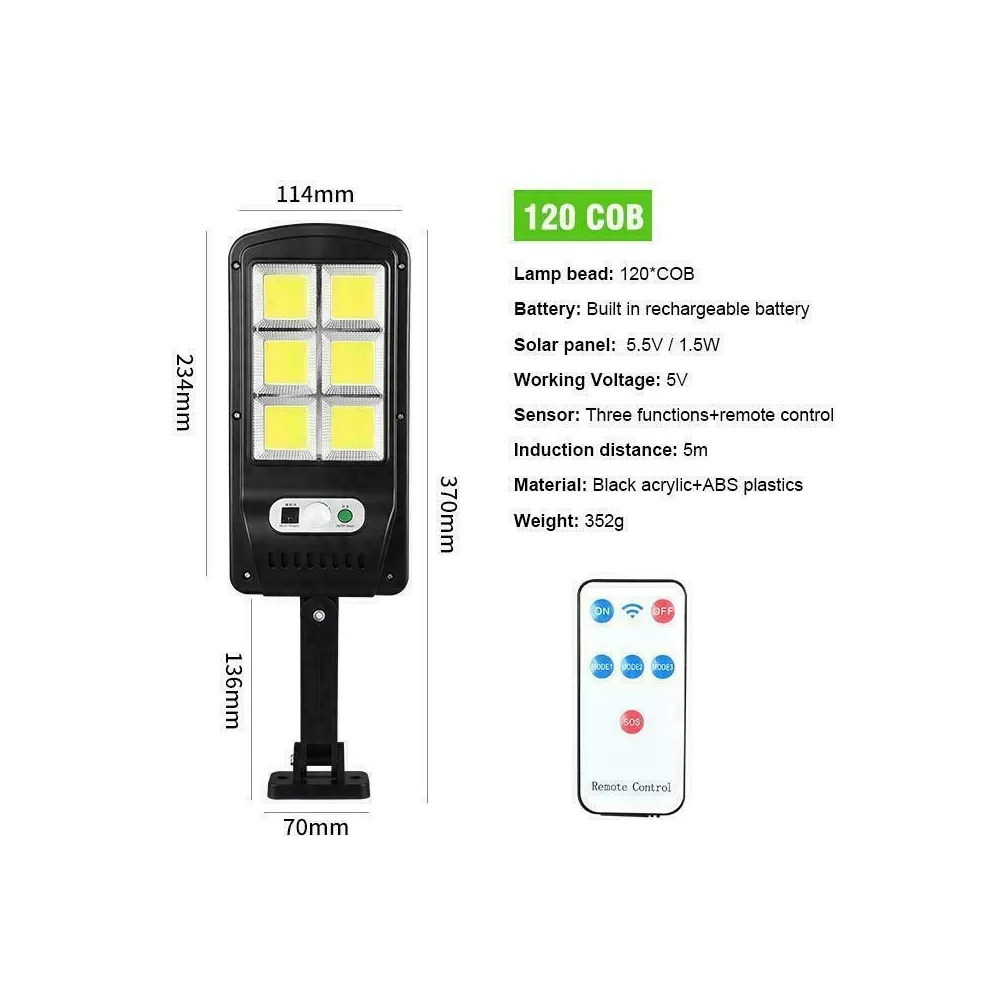 Proiector solar 120 Led COB, telecomanda senzor miscare si lumina