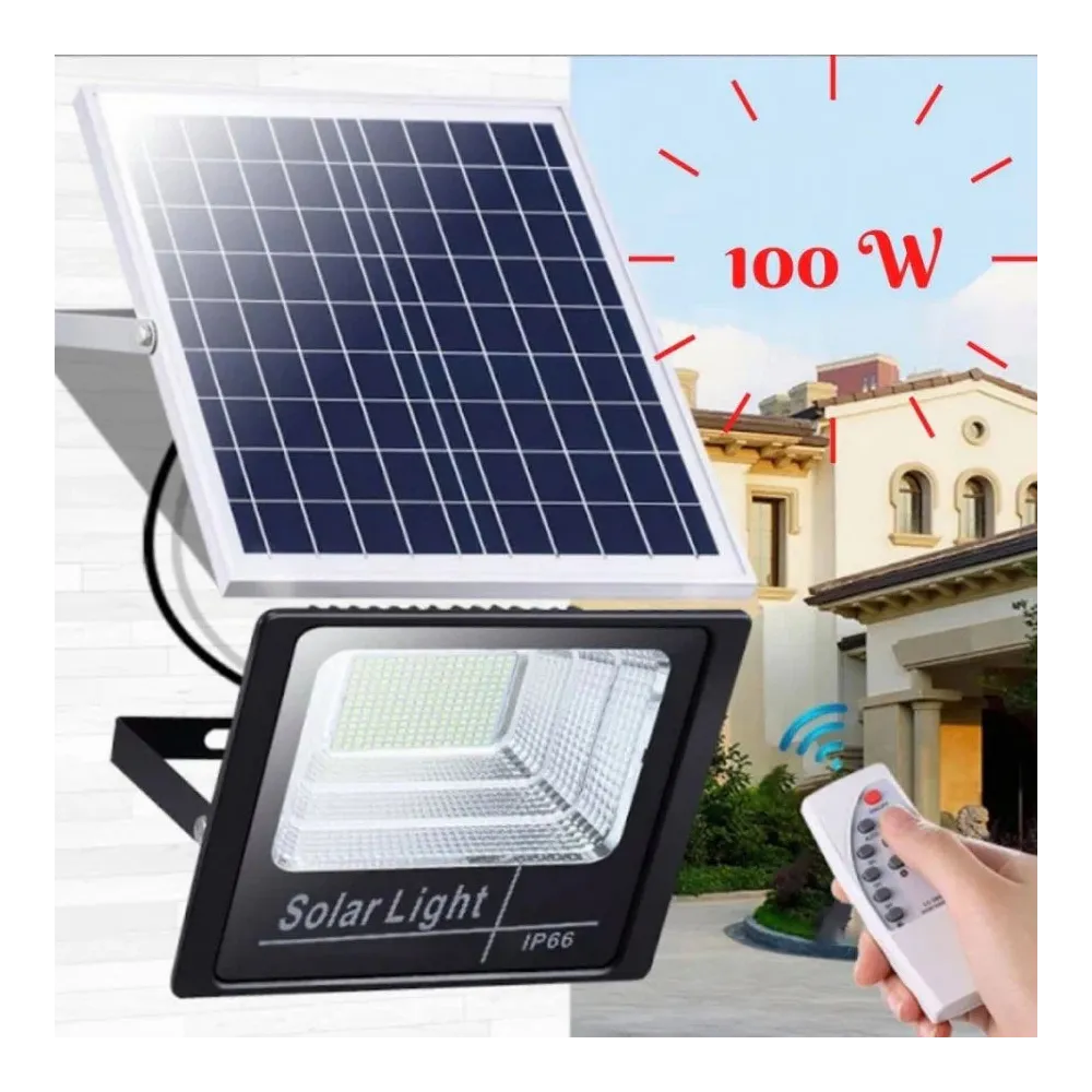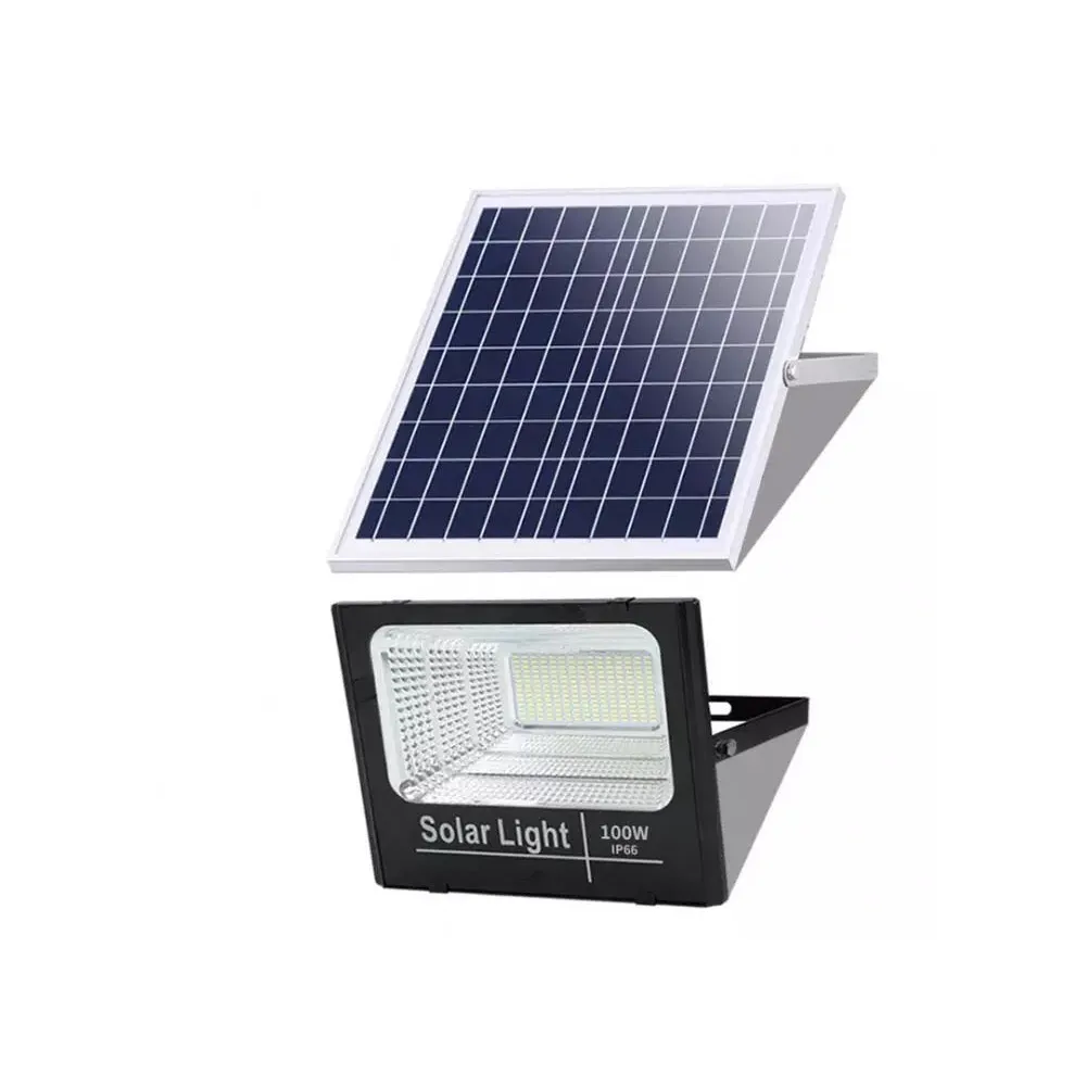 Set 2 x Proiector 100w cu panou solar Jortan , 6500k, IP66, telecomanda, indicator baterie