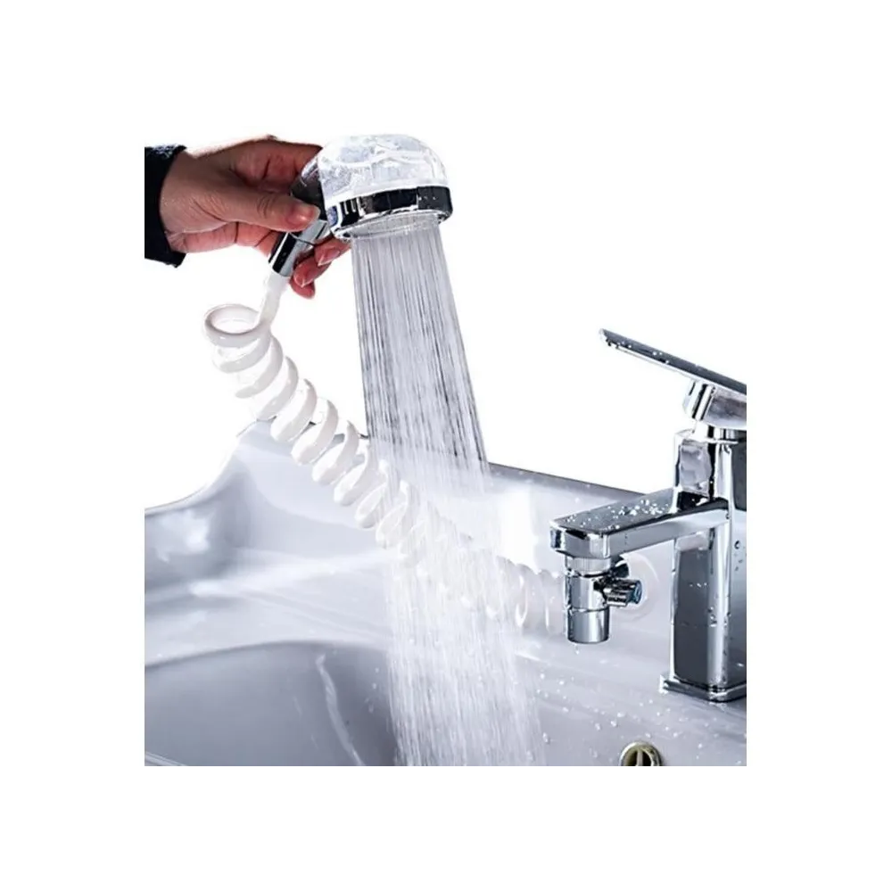 Instalare usoara: Scoateti robinetului si instalati noul robinet cu trei directii. Montati un furtun conectat la suportul de dus pe peretele la iesirea laterala. Pachetul include, de asemenea, un suport pentru montarea pe perete si plasarea unui cap in el. Cu toate acestea, partea inferioara a robinetului este destinata pentru apa normala care curge de la robinet. Instalarea unei extensii pentru baie nu afecteaza debitul de apa provenit de la un robinet obisnuit.