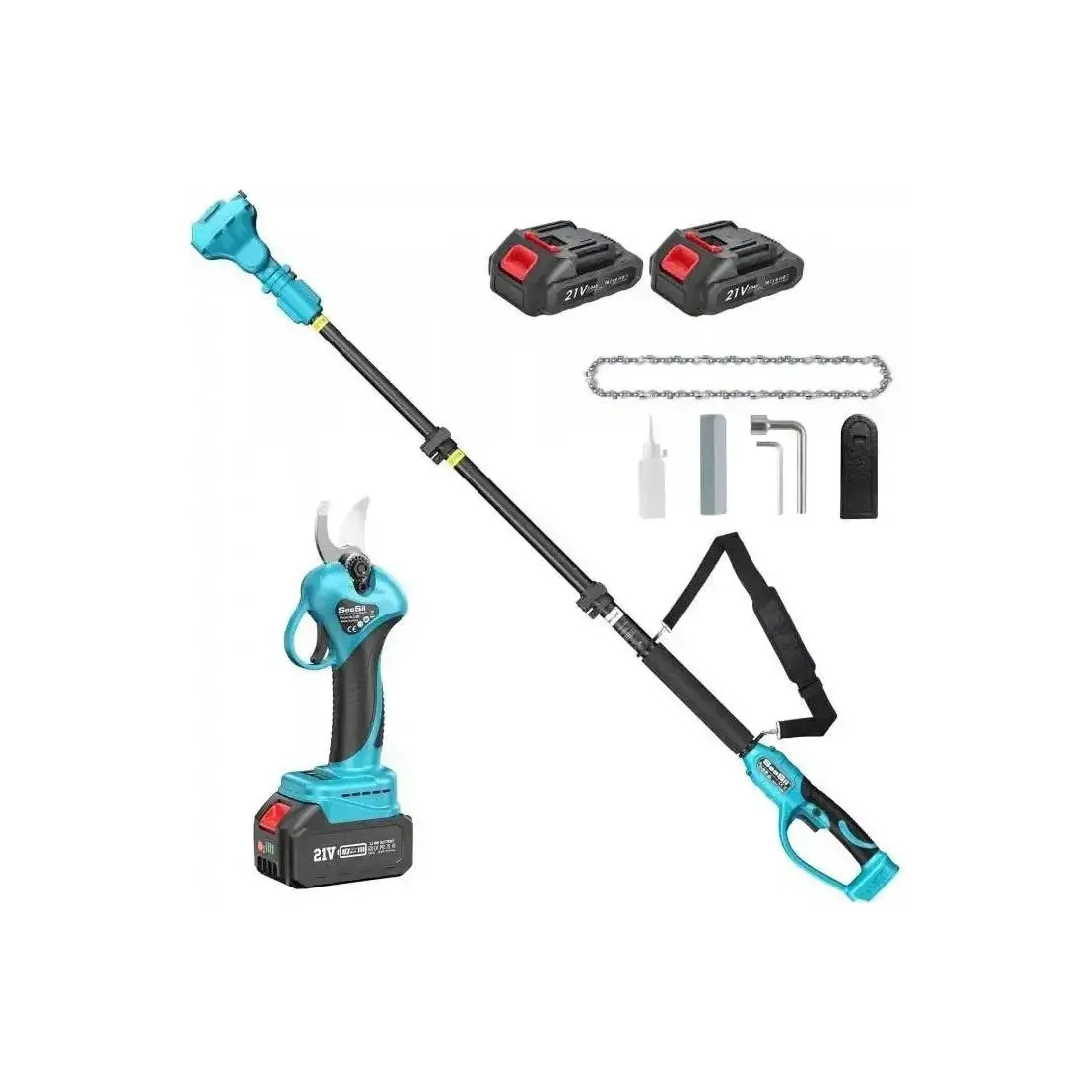Acest set este ideal pentru lucrări de tăiere a ramurilor și întreținerea plantelor, având un braț telescopic de 2 metri care permite accesul în zone mai greu de ajuns, precum și un unghi reglabil de tăiere, oferind flexibilitate și eficiență. Un partener de încredere pentru grădinari profesioniști sau amatori care doresc să lucreze rapid și eficient în grădină.