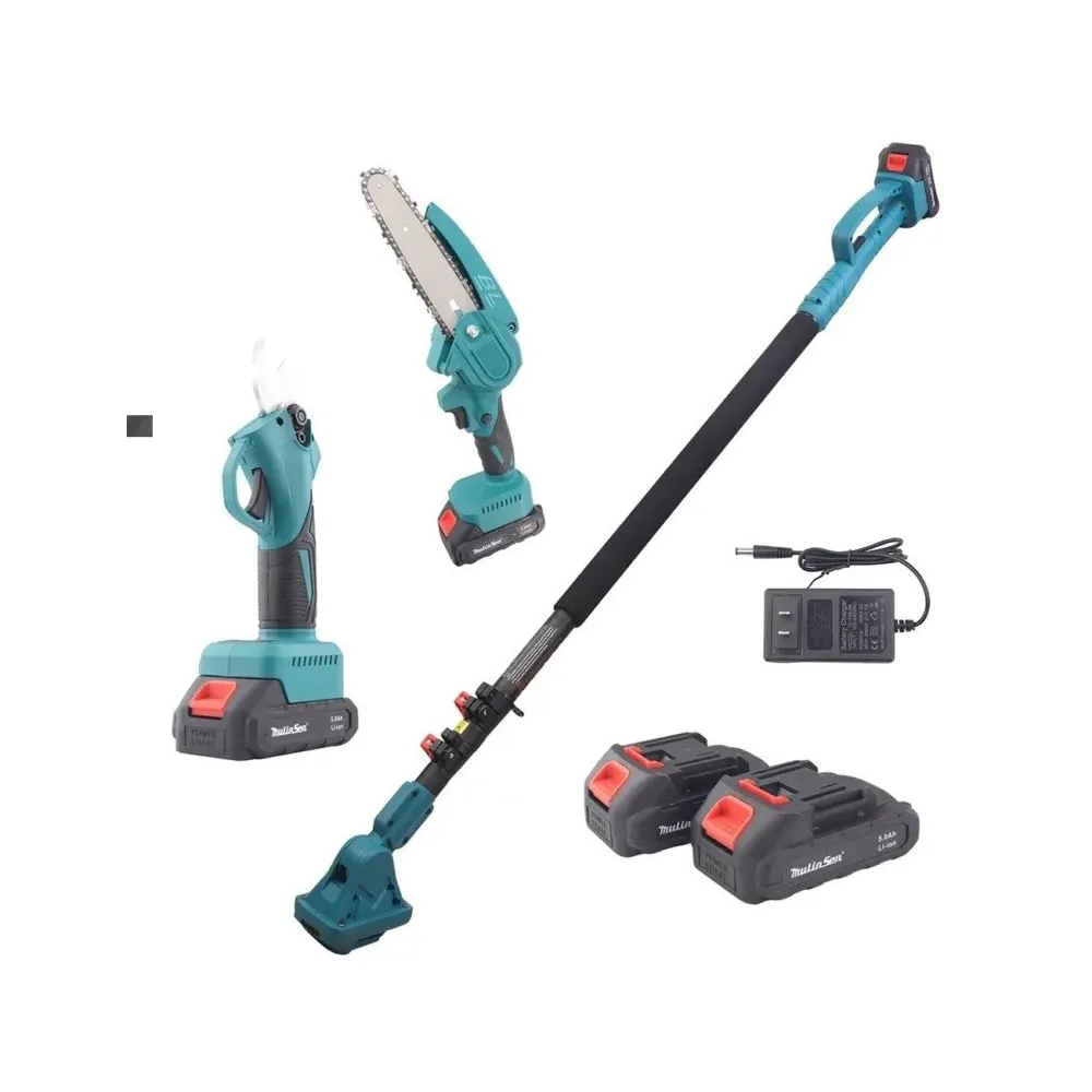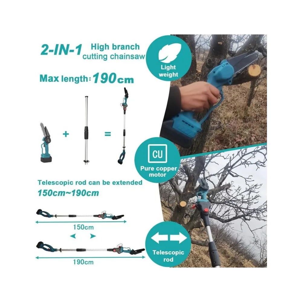 Set Foarfeca de Gradina și Mini Drujba 6 inch, 48V, 2 Acumulatori, Brat Telescopic 2 m, Unghi Reglabil de Taiere-09