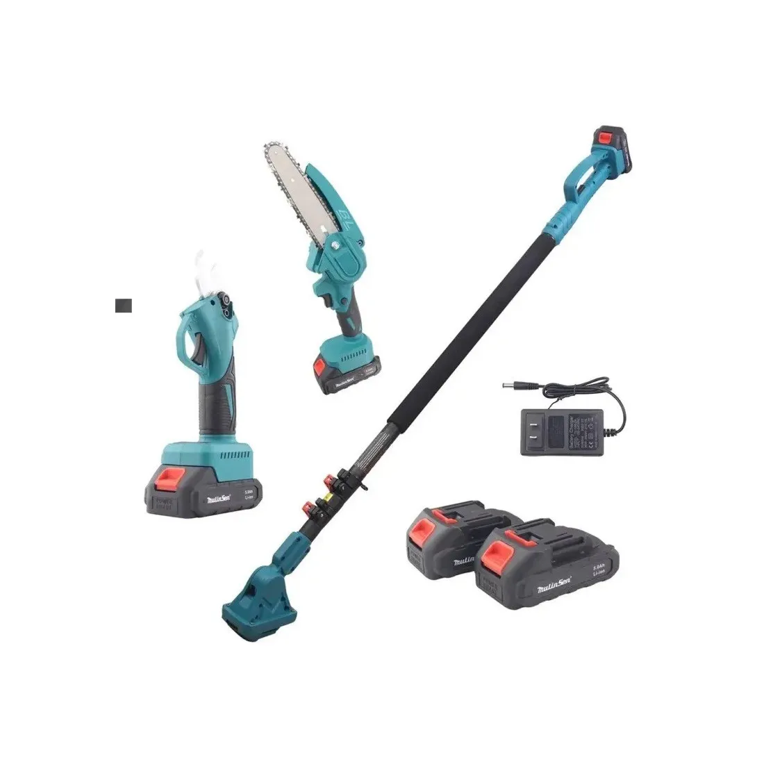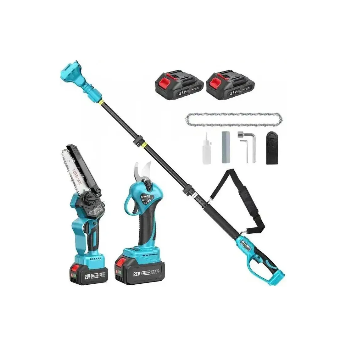Foarfecă de grădină și o mini drujbă de 6 inch alimentată de un sistem de 48V, echipat cu 2 acumulatori pentru o durată prelungită de utilizare. Acest set este ideal pentru lucrări de tăiere a ramurilor și întreținerea plantelor, având un braț telescopic de 2 metri care permite accesul în zone mai greu de ajuns, precum și un unghi reglabil de tăiere, oferind flexibilitate și eficiență. Un partener de încredere pentru grădinari profesioniști sau amatori care doresc să lucreze rapid și eficient în grădină.