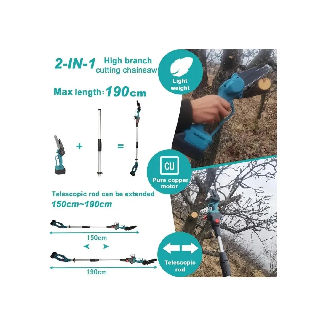 Set Foarfeca de Gradina și Mini Drujba 6 inch, 48V, 2 Acumulatori, Brat Telescopic 2 m, Unghi Reglabil de Taiere-09