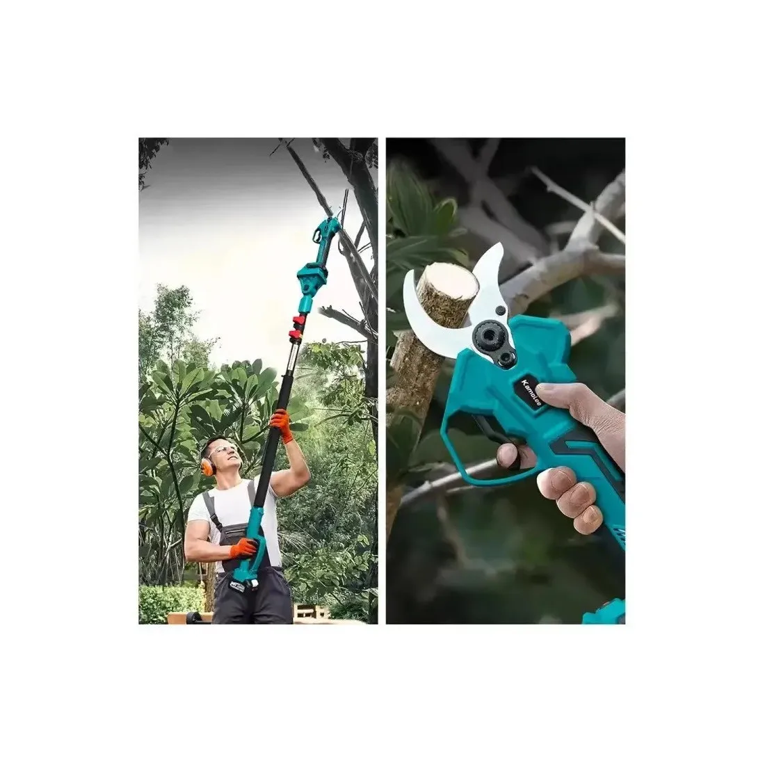 Acest set este ideal pentru lucrări de tăiere a ramurilor și întreținerea plantelor, având un braț telescopic de 2 metri care permite accesul în zone mai greu de ajuns, precum și un unghi reglabil de tăiere, oferind flexibilitate și eficiență. Un partener de încredere pentru grădinari profesioniști sau amatori care doresc să lucreze rapid și eficient în grădină.