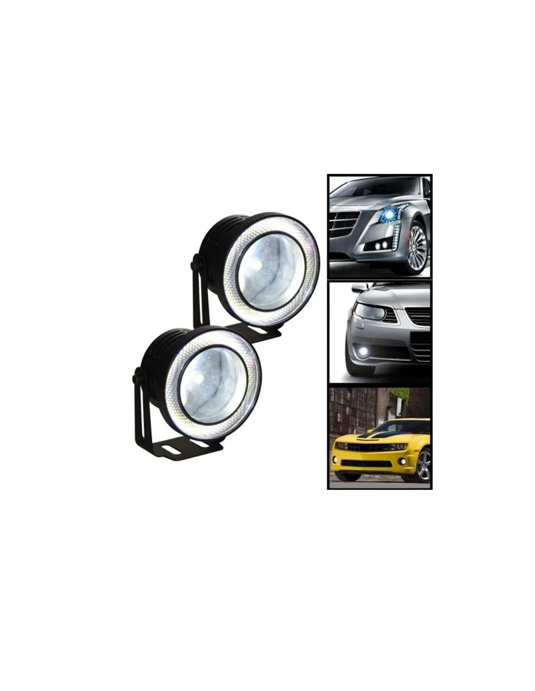 Set 2 proiectoare auto cu LED Angel Eyes, 76 mm, lumina alba