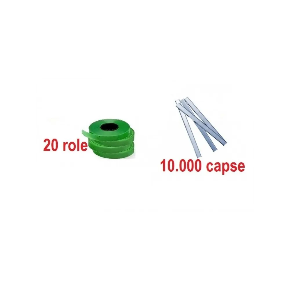 Set rezerve pentru dispozitivul pentru legat vita de vie Pachetul contine: 20 role de plastic 10,000 capse