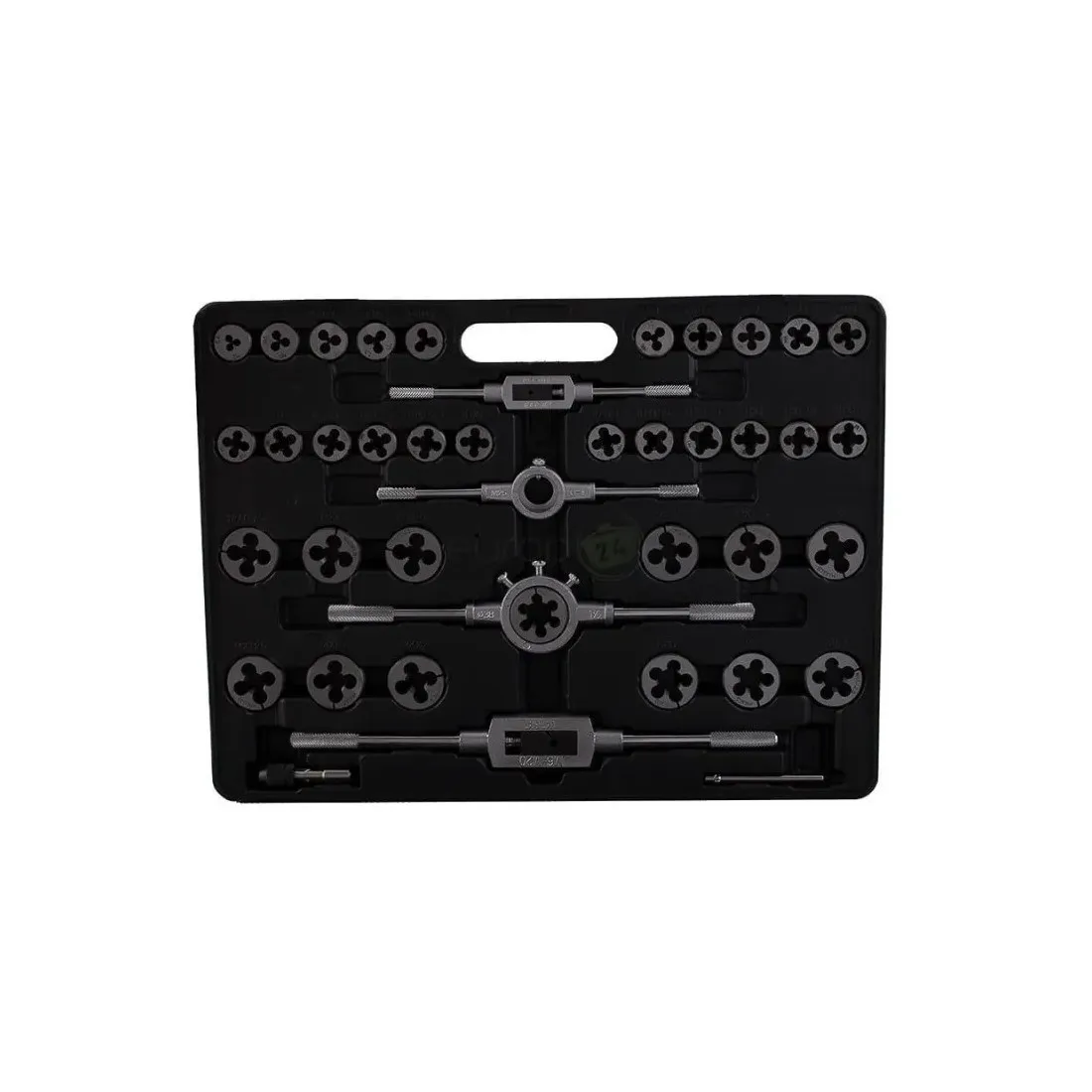 Acest set tarozi si filiere este dotat cu filiere manuale rotunde care sunt rigide si executa un filet curat, iar tarozii sunt potriviti atat pentru gauri strapunse, cat si infundate.