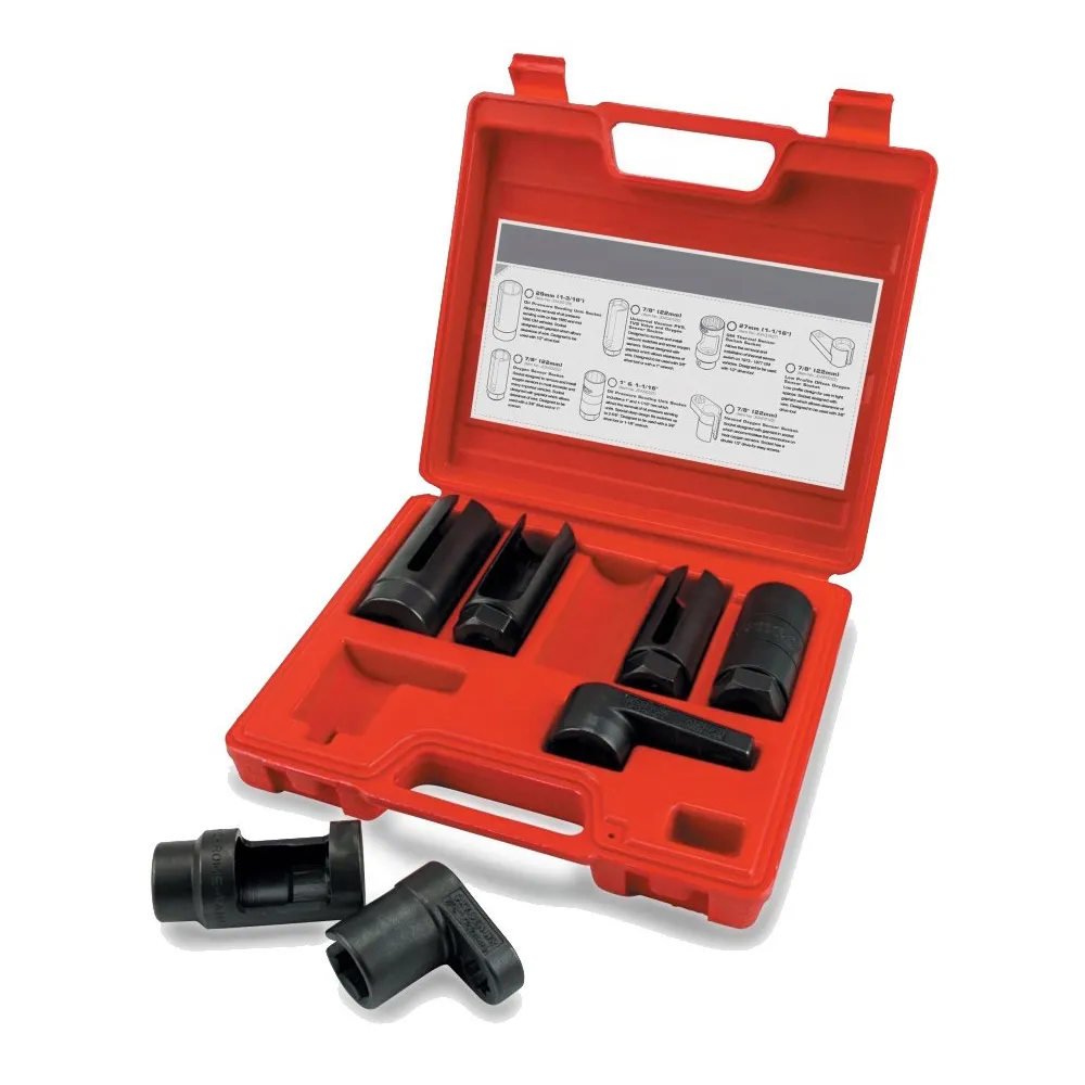 Inelarele au o forma speciala ce permite rasucirea injectoarelor fara a scoate firele. Trusa extrem de utila in orice atelier. Setul contine 7 piese din material CrV 50BV30 si CrMo SCM-440.